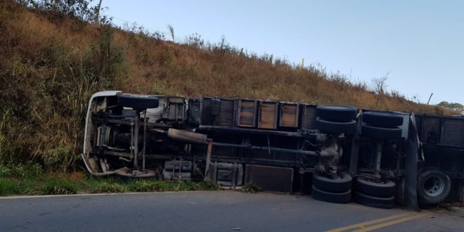 No final da noite desta terça-feira (24), um caminhão de cor branca de carroceria de madeira, com placa de Venda Nova do Imigrante (ES), carregada com materiais recicláveis, tombou na RJ 214, no trecho que liga Natividade e Varre-Sai. De acordo com testemunhas, o motorista perdeu o controle da direção ao tentar concluir a conhecida “Curva do Perillo”, próximo dos limites entre os municípios. A princípio, ninguém se feriu com gravidade, mas até a manhã desta quarta-feira (25), o utilitário permanecia atravessado na pista, cujo tráfego fluiu apenas em um dos sentidos.