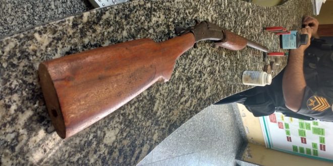 Na tarde desta sexta-feira (27), um homem foi preso por posse ilegal de arma de fogo, na área central de Purilândia, distrito de Porciúncula. A equipe do PAMESP Rural, com o subtenente Galarane e o sargento Anderson, que verificava denúncia anônima, e seguiu para o ponto indicado, próximo do antigo Clube da Melhor Idade (CLUMI), onde os agentes questionaram o envolvido de 47 anos, encontrando no interior de sua residência, a espingarda calibre 28, cinco munições de calibre 36 intactas e  outras quatro deflagradas (foto). Inicialmente a ocorrência foi apresentada à 139ª DP e depois transferida para o plantão de área da 148ª Delegacia de Italva, onde acusado acabou autuado em flagrante, mas pagou fiança no valor de R$ 980, razão pela qual, deverá responder em liberdade.