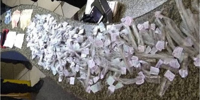 Militares do 29º BPM prenderam na tarde desta quinta-feira (02), um acusado de tráfico e apreenderam 302 buchas de maconha, na comunidade da Capelinha, Itaperuna. Os agentes verificavam denúncia anônima, quando inicialmente abordaram um táxi, tendo como passageiro Josemar Izidoro Rosa da Silva, de 18 anos, que ao ser confrontado, seguiu com os militares até a residência de um familiar onde mora atualmente, na Rua C, casa 14, onde após buscas, os PMs encontraram na varanda do imóvel, dentro de um móvel antigo, as unidades da erva, com adesivos de uma facção criminosa, que seriam vendidos por R$ 5, R$ 10 e R$ 20, totalizando 653 gramas de entorpecente. Levado até a 143ª Delegacia, o rapaz acabou autuado em flagrante e deve ser transferido ainda hoje ao sistema prisional.