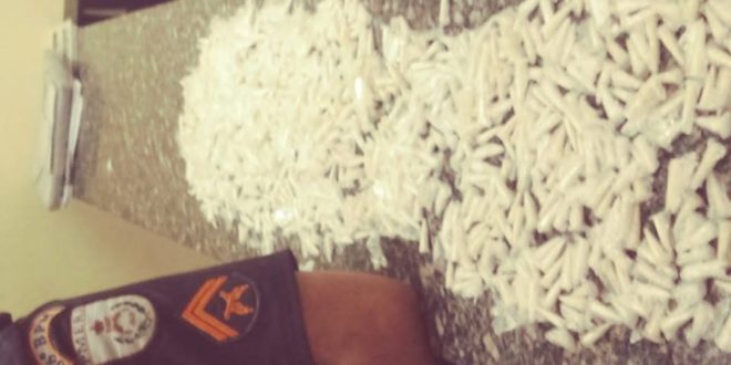 Quase mil pinos de cocaína foram apreendidos por militares do 36º BPM, no final da noite desta sexta-feira (10), no interior de uma residência, na Rua Beira Linha, no bairro Dezessete, Santo Antônio de Pádua. Os agentes verificavam denúncia anônima, contra Wesley da Silva, de 21 anos e durante buscas pelo imóvel, encontraram enterrados no quintal, 955 pinos, totalizando 815 gramas da droga. Levado até o plantão de área da 135ª Delegacia/Itaocara, o rapaz teve a prisão em flagrante confirmada pelo delegado, sendo transferido ao sistema prisional.