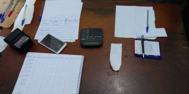 Um homem foi detido na tarde desta quinta-feira (16), por agentes do Serviço Reservado do 29º BPM ao ser flagrado com material do jogo do bicho, no interior de um imóvel da Rua Benedito Nicolau, no bairro Vinhosa, Itaperuna. Os agentes apreenderam uma impressora de apostas, comandas, fichas de controle, anotações e cerca de R$ 190 em dinheiro, apresentados na 143ª Delegacia, junto com W.A.B., de 60 anos, que após ser autuado acabou liberado para responder em liberdade.
