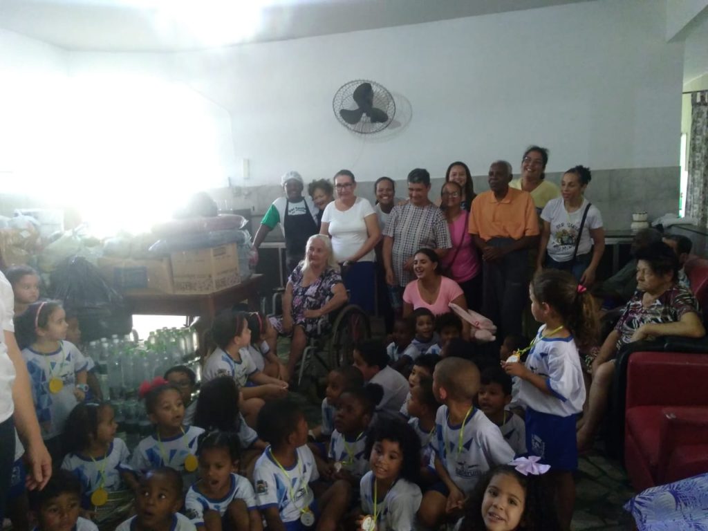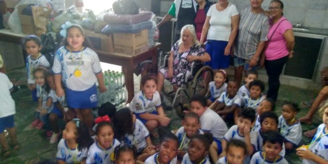 – Trabalhando com a história “O Patinho Feio” e com o disparador solidariedade, os alunos da Educação infantil, participaram de algumas atividades diferenciadas e até uma gincana nessa semana com o objetivo de ser solidário. As crianças assistiram vídeos com direito a pipoca, ouviram e dramatizaram histórias. Teve dia de brincadeira, premiação e contagem dos itens arrecadados com a gincana e o dia de passeio, que foi para entregar os materiais doados pelas famílias e a comunidade ao Asilo de Natividade. Foi um dia muito especial para nossas crianças e para os idosos que nos agradeceram com muito carinho e vários sorrisos. A comunidade se juntou nessa campanha contribuindo com as crianças neste ato de amor, – destacaram as educadoras.
