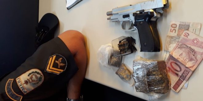 Em Itaperuna suspeito é preso com droga e réplica de arma