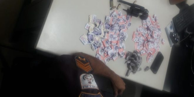Centenas de invólucros de drogas, além de uma arma de fogo foram aprendidos durante a noite desta quinta-feira (20), no bairro Boa Fortuna, Itaperuna, após ação deflagrada por militares do 29º BPM. Verificando denúncia anônima, os policiais seguiram até a Rua Adelino Garcia Bastos, onde no interior da residência de fundos, onde mora um rapaz, de 24 anos, que não teve a identidade revelada, encontraram 30 buchas de maconha, 239 papelotes de cocaína com valores de R$ 10, R$ 25 e R$ 50, além de um revólver calibre 38 com numeração raspada e seis munições intactas e telefone celular. Levado até a 143ª Delegacia, o rapaz prestou depoimento, sendo autuado em flagrante e transferido ao sistema prisional.