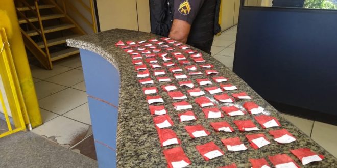 80 papelotes de cocaína foram apreendidos no final da manhã deste domingo (23), ao lado de um imóvel abandonado no Morro da Pedra Branca, na parte alta do bairro Aeroporto, Itaperuna. Os agentes verificavam denúncia anônima e após buscas no ponto indicado, encontraram a droga enterrada no terreno, sem que ninguém fosse preso. O caso seguiu para registro na 143ª Delegacia.
