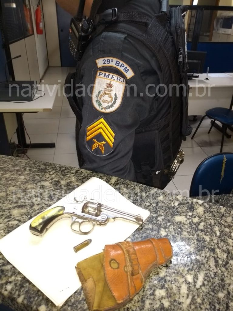 Após buscas no imóvel, os PMs apreenderam o revólver calibre 32 com uma munição intacta e coldre (foto). O responsável pelo local, J.J.P., de 60 anos, foi levado até a 139ª Delegacia, sendo autuado em flagrante pelo delegado Uillian Costa, mas pagou fiança de R$ 954 e por isso, responderá em liberdade.