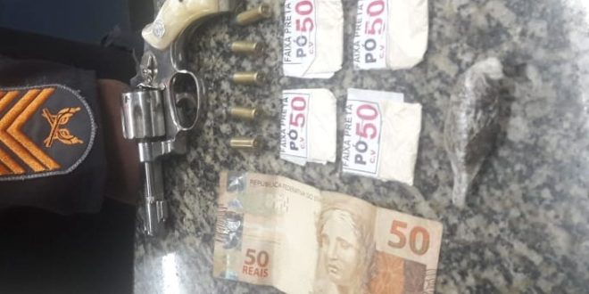 Os agentes verificavam denúncia anônima e ao avistarem o suspeito, ele se refugiou no interior do imóvel, onde estavam escondidos sob a cama do quarto, quatro papelotes de cocaína, uma bucha de maconha, além de um revólver calibre 32 com numeração raspada e cinco munições intactas, que ele admitiu ter comprado em Guaçuí (ES), por R$ 1.800. Levado até a 143ª Delegacia, acabou autuado e transferido ao sistema prisional.