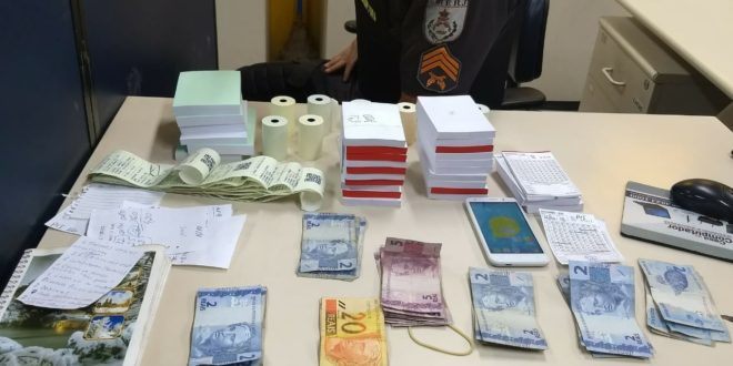 Farta quantidade de material usado na prática do jogo do bicho foi apreendida no final da manhã desta terça-feira (16), no bairro Vinhosa, Itaperuna. Militares do 29º BPM verificavam denúncia e se deslocaram até a Rua Júlio César, onde no interior de um dos imóveis, encontraram talões numerados, comandas, bobinas e equipamento para impressão de apostas, cadernos com anotações, R$ 135, dentre outros. O responsável pelo local – homem de 46 anos – foi levado até a 143ª Delegacia, autuado por contravenção, delito pelo qual, responderá em liberdade.