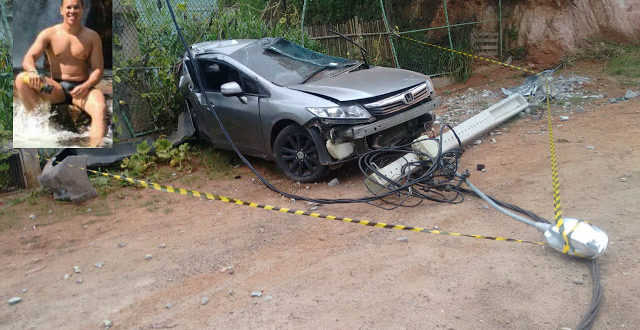 Um homem morreu após sofrer acidente de trânsito no final da madrugada deste domingo (25), na RJ 230, em Bom Jesus do Itabapoana. Segundo informações de testemunhas, Pablo da Silva Amorim, de 27 anos (detalhe na foto) , seguia pela rodovia no Honda Civic, de cor prata, com placa de Apiacá (ES), quando próximo do IFF, perdeu o controle da direção do veículo, rodou na pista e se chocou contra um poste.