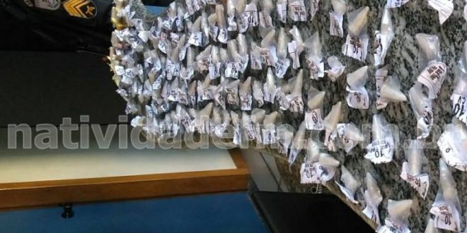 No final da tarde desta quinta-feira (29), 168 pinos de cocaína, com valores de venda de R$ 10 e R$ 35, foram apreendidos por militares do 36º BPM, no distrito de Paraíso do Tobias, Miracema. Os agentes verificavam a informação anônima, que dava conta de que integrantes de uma facção criminosa que atua na comunidade, estariam usando um terreno baldio, que fica atrás do cemitério municipal, no Morro do Operário, como esconderijo de entorpecentes. Após buscas pela área, o droga que estava no interior de uma sacola plástica, foi localizada e apresentada ao plantão da 137ª Delegacia. Um suspeito, não encontrado, deverá ser investigado.