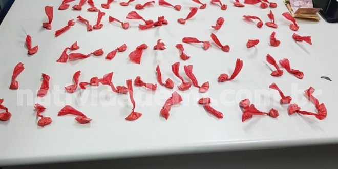Dois elementos, de 32 e 18 anos, que não tiveram as identidades reveladas, além de um adolescente de 16, foram autuados por tráfico de drogas na madrugada deste domingo (16). Instantes antes, eles teriam sido flagrados com 73 gramas de cocaína, já pronta para comercialização, no interior de uma residência, no Beco Abel Sabino, no bairro Vinhosa, Itaperuna.