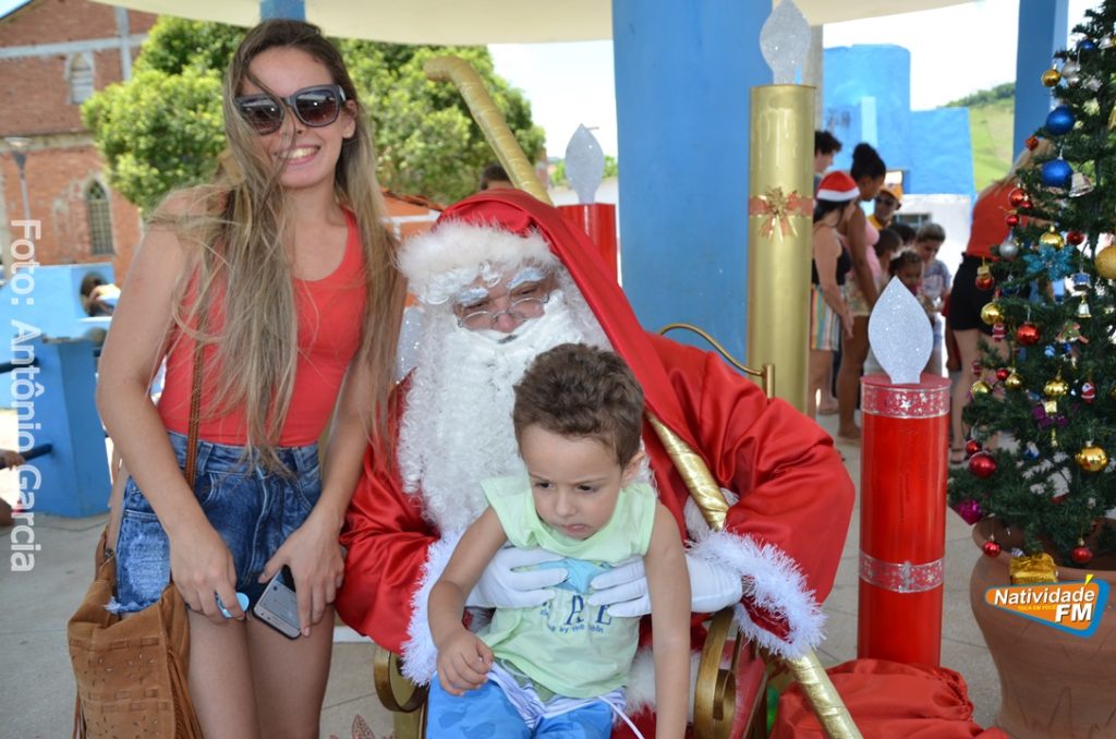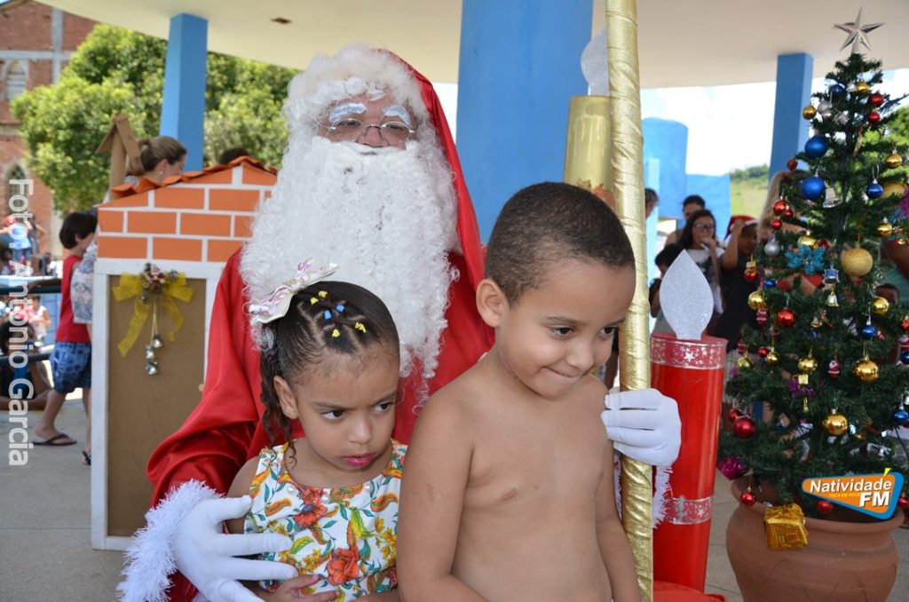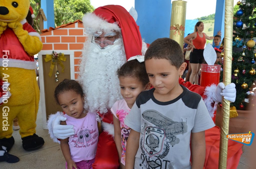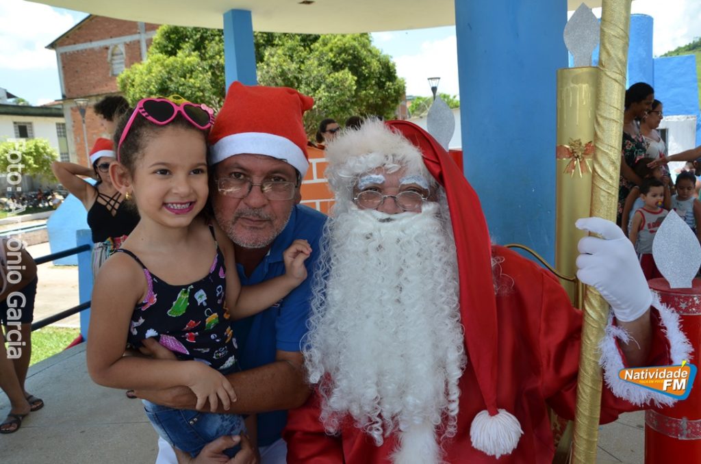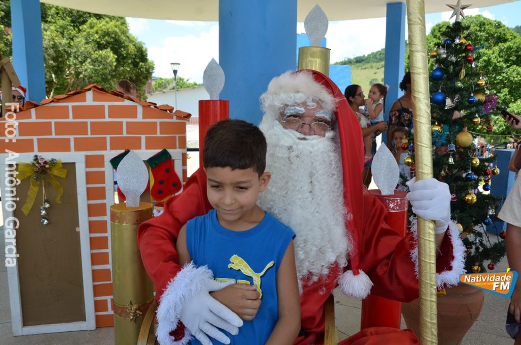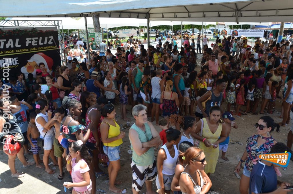 Centenas de crianças participaram neste domingo (16), na Praça Maria Altina, no bairro Balneário, do evento “Natal Feliz”, parceria da Prefeitura de Natividade com a sociedade natividadense, que arcou através de doações, com quase a totalidade dos custos da festa, que contou com a participação ainda de grupos, empresas e entidades de serviço que atuam na cidade, que se encarregaram da distribuição pipoca, bolo, batata frita, cachorro quente, refrigerante, geladinho, picolés, além de cerca de três mil e quinhentos presentes, com a presença do Papai Noel, Claro!