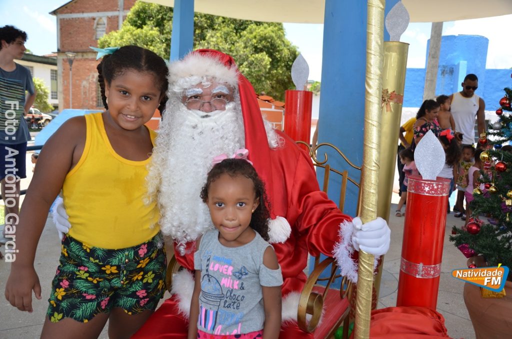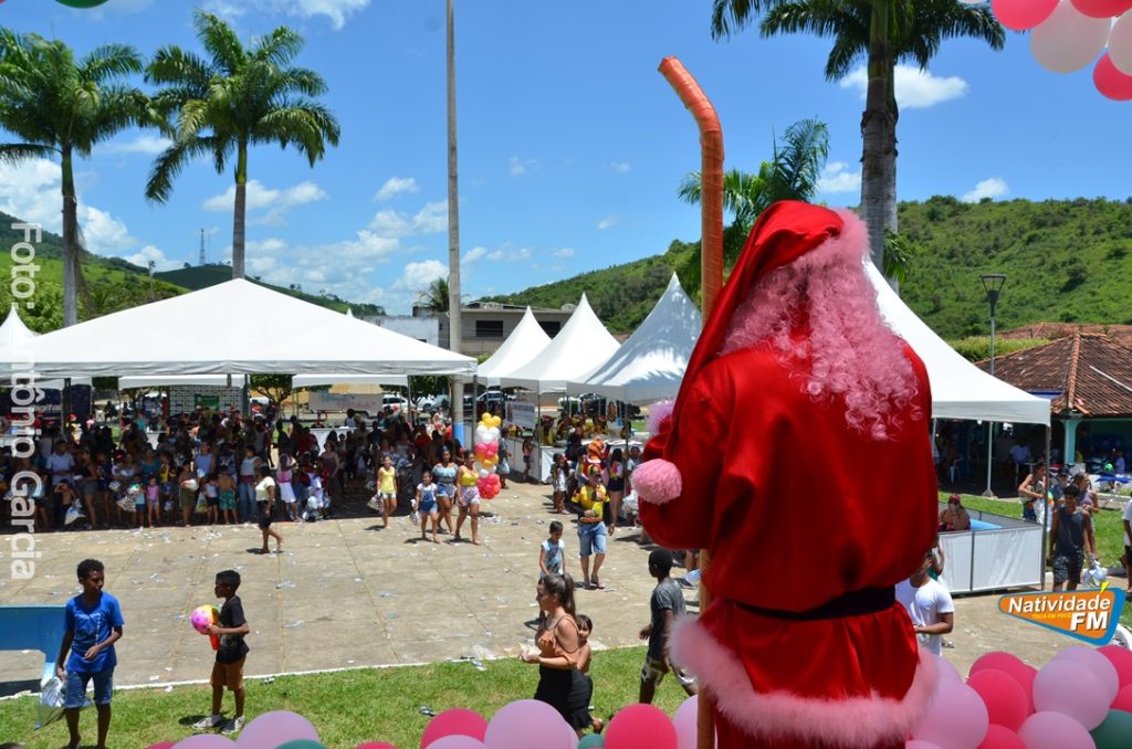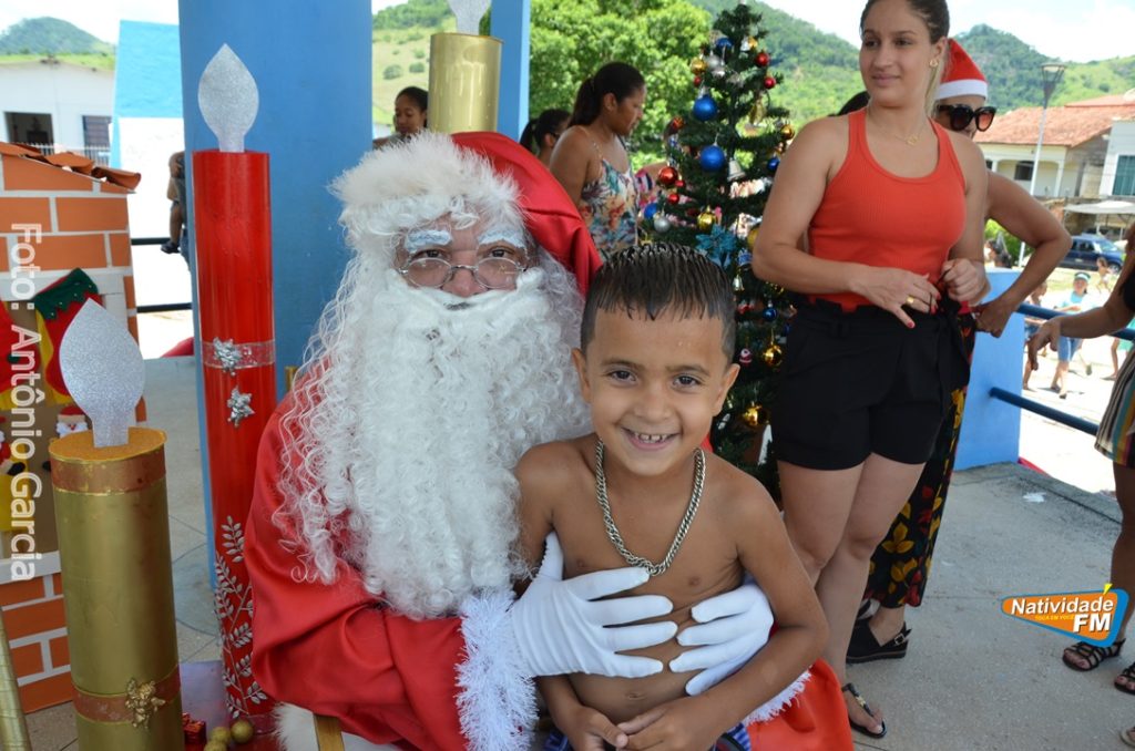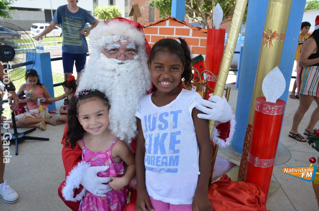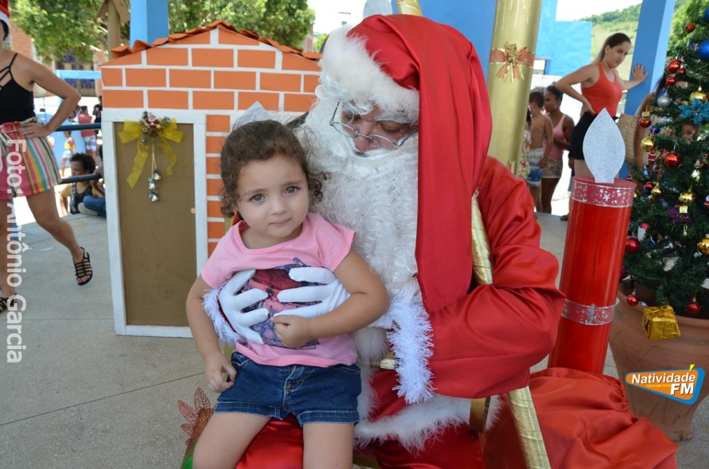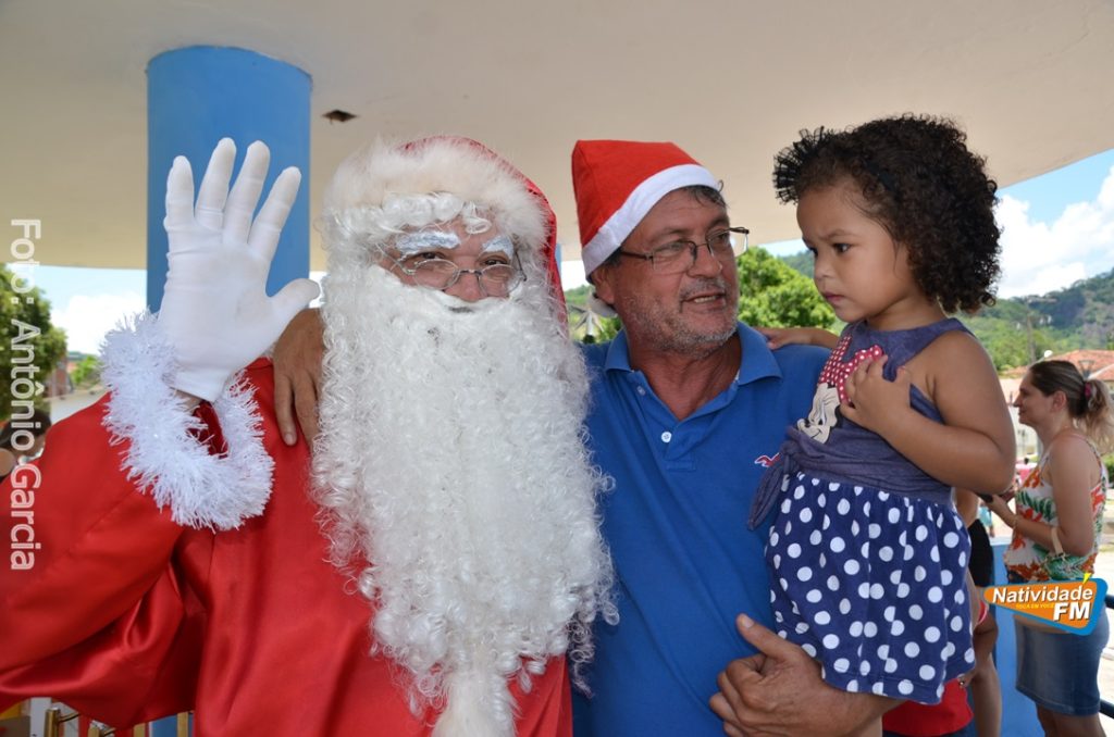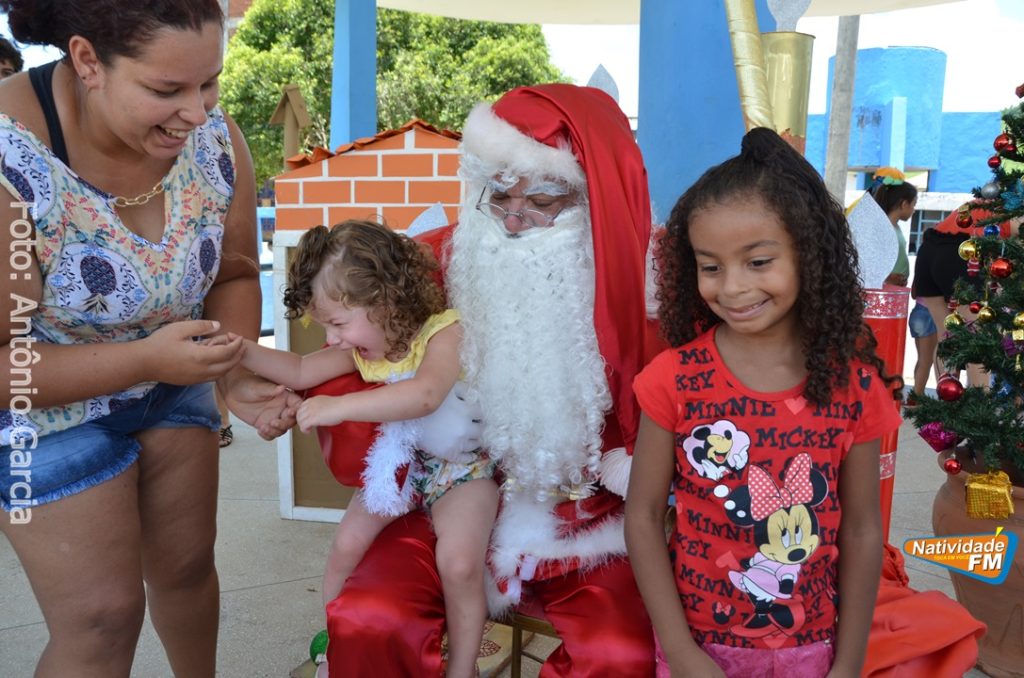 Centenas de crianças participaram neste domingo (16), na Praça Maria Altina, no bairro Balneário, do evento “Natal Feliz”, parceria da Prefeitura de Natividade com a sociedade natividadense, que arcou através de doações, com quase a totalidade dos custos da festa, que contou com a participação ainda de grupos, empresas e entidades de serviço que atuam na cidade, que se encarregaram da distribuição pipoca, bolo, batata frita, cachorro quente, refrigerante, geladinho, picolés, além de cerca de três mil e quinhentos presentes, com a presença do Papai Noel, Claro!