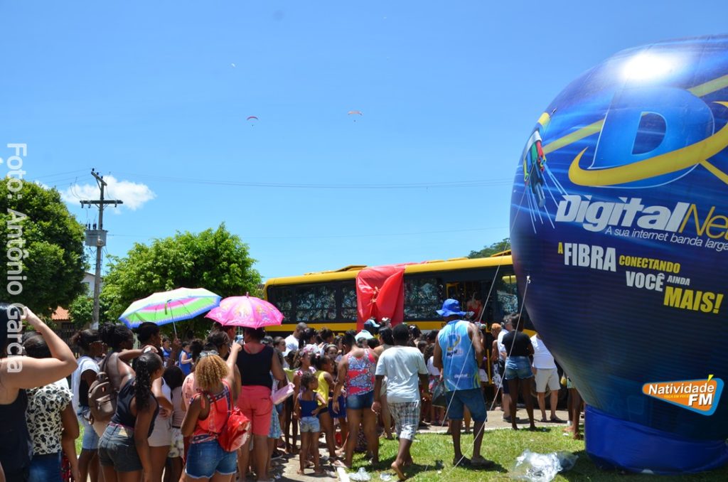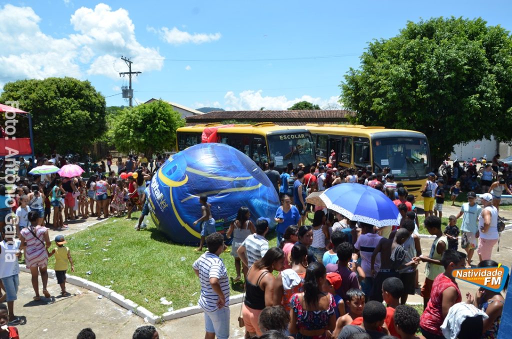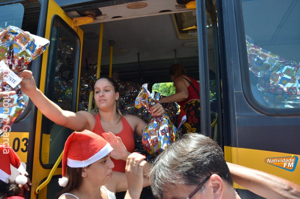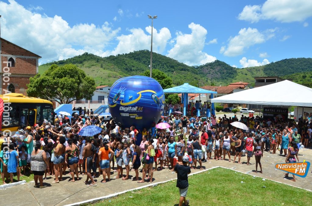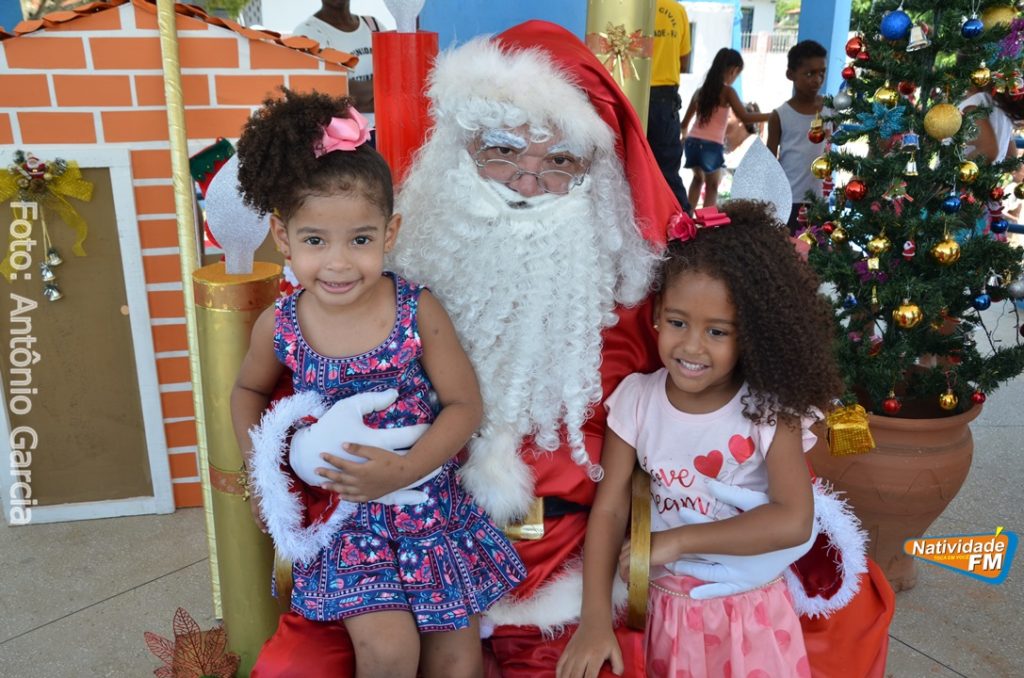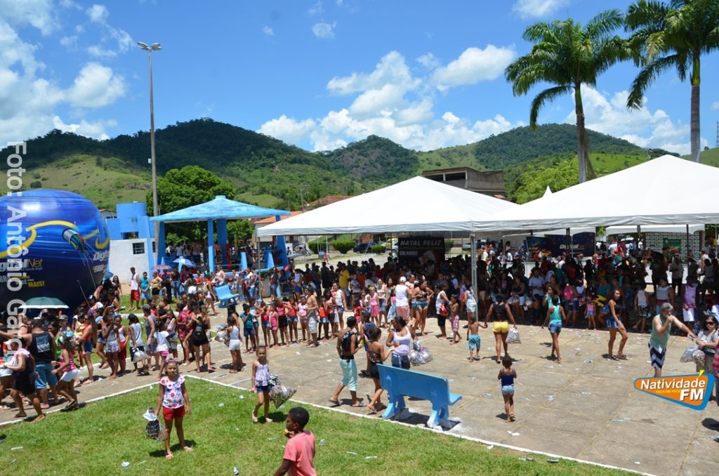 Centenas de crianças participaram neste domingo (16), na Praça Maria Altina, no bairro Balneário, do evento “Natal Feliz”, parceria da Prefeitura de Natividade com a sociedade natividadense, que arcou através de doações, com quase a totalidade dos custos da festa, que contou com a participação ainda de grupos, empresas e entidades de serviço que atuam na cidade, que se encarregaram da distribuição pipoca, bolo, batata frita, cachorro quente, refrigerante, geladinho, picolés, além de cerca de três mil e quinhentos presentes, com a presença do Papai Noel, Claro!