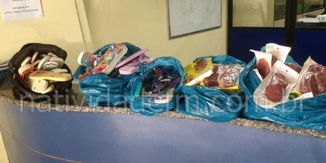 Acionados, militares do 29º BPM seguiram para o local e após avaliarem a gravação, saíram em busca da envolvida, encontrada bebendo em bar não muito distante dali. Com a mulher, que é natural da região da capital fluminense e possui inúmeras passagens por furto, assaltos, tráfico de drogas, dentre outros, os agentes recuperaram 30 pares de sandálias, 15 pacotes de carne seca, 14 embalagens de bacon, além de outras cinco de salame do tipo italiano fatiado, mercadoria avaliada em cerca de cerca de R$ 1.330.
