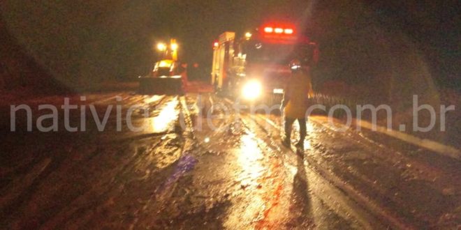 Por volta das 21h deste sábado (29), um deslizamento de terra – com pedras e galhos de árvores – provocou o fechamento da RJ 220 por mais de quatro horas, nos dois sentidos, próximo dos limites entre Natividade e Porciúncula. Houve retenção de veículo e depois de muito trabalho envolvendo bombeiros do destacamento 4/21 e as Defesas Civis e Secretarias de Obras e Agricultura dos dois municípios, que usaram máquinas pesadas e caminhões, a pista foi liberada no início da madrugada.