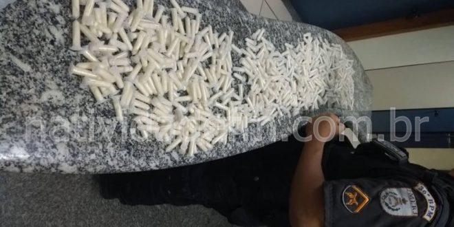 Na madrugada deste domingo (06), militares do 36º BPM prenderam uma mulher que transportava centenas de pinos de cocaína, em Miracema. No momento em que um dos ônibus da Viação 1001, vindo do Rio de Janeiro, chegou ao terminal rodoviário da cidade, os agentes entraram em ação e passaram a verificar os passageiros, entre os quais, Gláucia da Costa Rogério, de 41 anos, com quem encontraram na bagagem, os 624 pinos da droga, que ela acabou confessando ter pegado no município de Niterói, na Região Metropolitana e os entregaria em Santo Antônio de Pádua, para onde acabou levada e atuada em flagrante pelo plantão de área da 136ª Delegacia, onde permaneceu aguardando transferência ao sistema prisional.