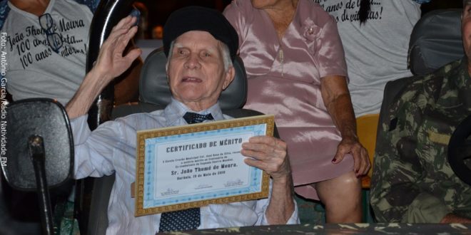Faleceu nesta quarta-feira (23), aos 100 anos, o sargento João Thomé Moura, ex-combatente da Força Expedicionária Brasileira (FEB), que lutou na 2ª Guerra Mundial, na Itália. O herói, há tempos se encontrava com a saúde bastante debilitada, mas ano passado, celebrou com grandes honras seu centenário de vida, na companhia de familiares e amigos, no distrito de Ourânia, onde passou toda sua vida.