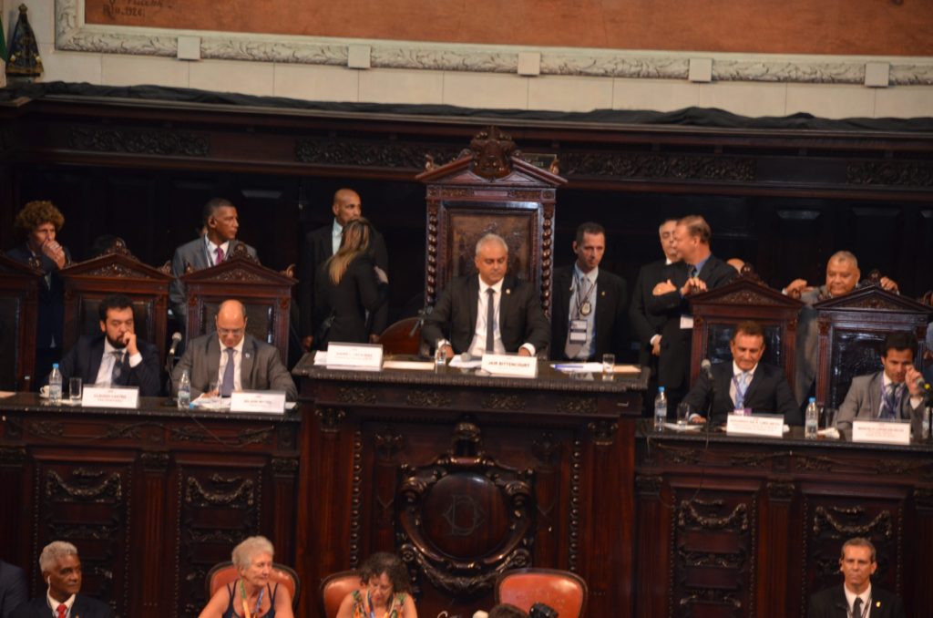 A sessão começou às 15h, presidida pelo deputado André Ceciliano (PT),com a mesa formada pelo governador Wilson Witzel; o vice-governador Cláudio Castro; o procurador-geral da Procuradoria do Estado, Marcelo Lopes da Silva; o subprocurador-geral de Justiça de administração, Eduardo da Silva Lima Neto, e o defensor público geral do Rio, Rodrigo Pacheco.