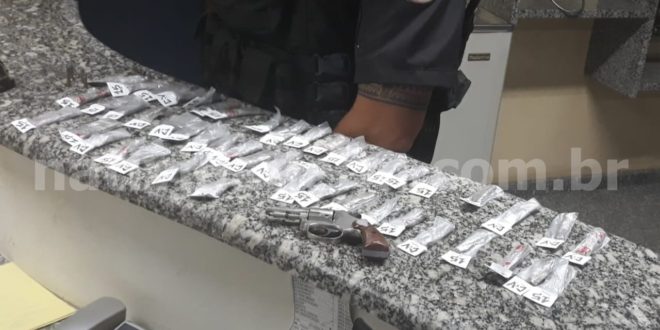 Na madrugada anterior, outra equipe já havia prendido Fernando Nunes de Souza Calixto, de 28 anos, flagrado com 49 buchas de maconha e um revólver calibre 22 e cinco munições (foto), na Rua Maria Tereza Sodré Linhares, no bairro Vila Nova. Levado até o plantão de área da 142ª DP/Cambuci, acabou autuado por tráfico e porte ilegal de arma e transferido ao sistema prisional.