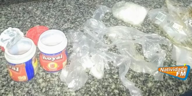Na noite desta quarta-feira (06), um suspeito de tráfico foi preso no bairro Vila da Paz, Natividade. Equipes do Patrulhamento Tático Móvel (PATAMO I e II – sargentos Prevato/Eduardo e cabos França/Lacerda e Aguiar) ) verificavam denúncia anônima e seguiram atá a residência de Cristiano Campos Cardoso, o “Onze” de 39 anos, onde após buscas, localizaram dois potes com cocaína e fermentos em pó, usado geralmente para misturar a droga, além de material para endolação.
