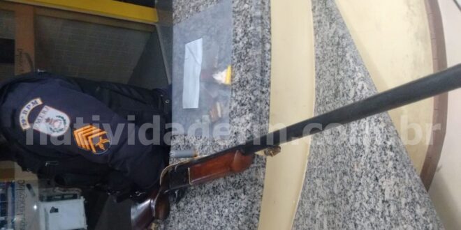 Deixando o imóvel, próximo ao local da abordagem, os agentes avistaram os dois veículos das vítimas – Gol e Fiat Pálio – no qual estavam outros três criminosos, que abandonaram os carros e conseguiram fugir a pé se embrenhando em área de matagal. Na fuga, o trio ainda deixou para trás a espingarda calibre 12 (foto), provavelmente a mesma usada pera render as oito vítimas, encontradas amarradas com fios de telefone e carregadores de celulares.