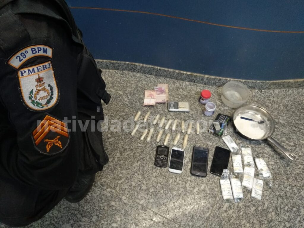 Equipes do Patrulhamento Tático Móvel (PATAMO I e II), da 3ª Companhia do 29º BPM, apreenderam quantidade expressiva de pasta base de cocaína, no final da tarde desta sexta-feira (15), na área central de Porciúncula. Eles verificavam denúncia anônima e passaram a monitorar um imóvel, na Rua Deputado Carlos Pinto Filho, que estaria sendo usado como ponto de endolação e distribuição de entorpecentes por uma facção criminosa, cuja célula seria comandada via celular, por um traficante que cumpre pena no presídio Diomedes Vinhosa Muniz, Itaperuna.