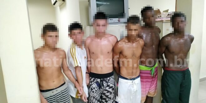 Seis elementos, entre os quais quatro adolescentes, foram detidos no final da tarde deste sábado (06), sob a acusação de assalto, em Bom Jesus do Itabapoana. Um sétimo suspeito, também menor, conseguiu fugir, se jogando nas águas do Rio Itabapoana e desaparecendo do outro lado da margem, já em território capixaba.