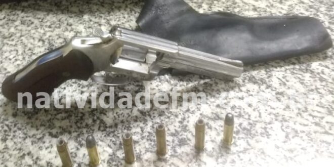 Um revólver calibre 38, carregado com seis munições intactas, foi apreendido na noite desta segunda-feira (08), na zona rural de Cardoso Moreira. O artefato estava sendo transportado no assoalho do Toyota Corolla, com placa de Cachoeiro do Itapemirim (ES), quando esse passou por revista de policiais militares do 29º BPM, na altura do trevo de acesso ao distrito de Outeiro. A arma estava junto aos pés do motorista identificado apenas pelas inicias N.N.C., de 60 anos, que depois de apresentado ao plantão da 148ª DP/Italva, acabou autuado em flagrante. Não há confirmação se houve ou não pagamento de fiança.
