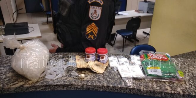 No início da noite desta segunda-feira (13), um rapaz foi preso com envolvimento com o tráfico de drogas, no bairro Grenville, Porciúncula. Após receberem informações do sargento Prevato (de folga), os também sargentos J. Cláudio e Roney, do setor “tango”, Rodrigo Oliveira/Pablo e cabos Santana/Diego, do PATAMO, se deslocaram até a residência de Maury de Oliveira, o Pequeno, de 20 anos, na Rua Padre Alfredo Gualandi, onde realizaram buscas com autorização da mãe do suspeito.