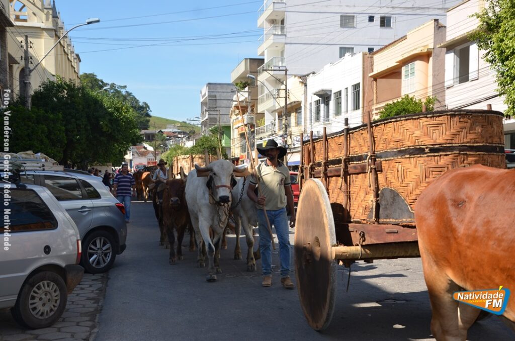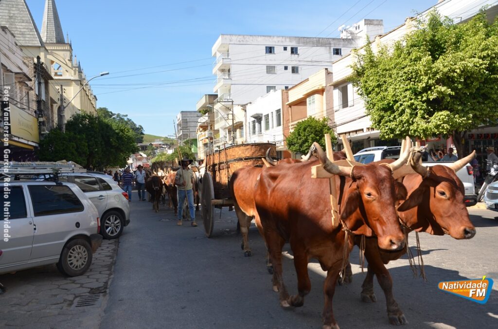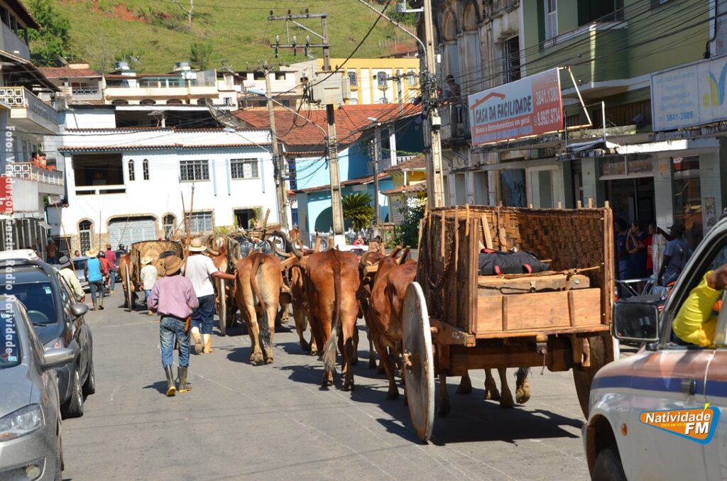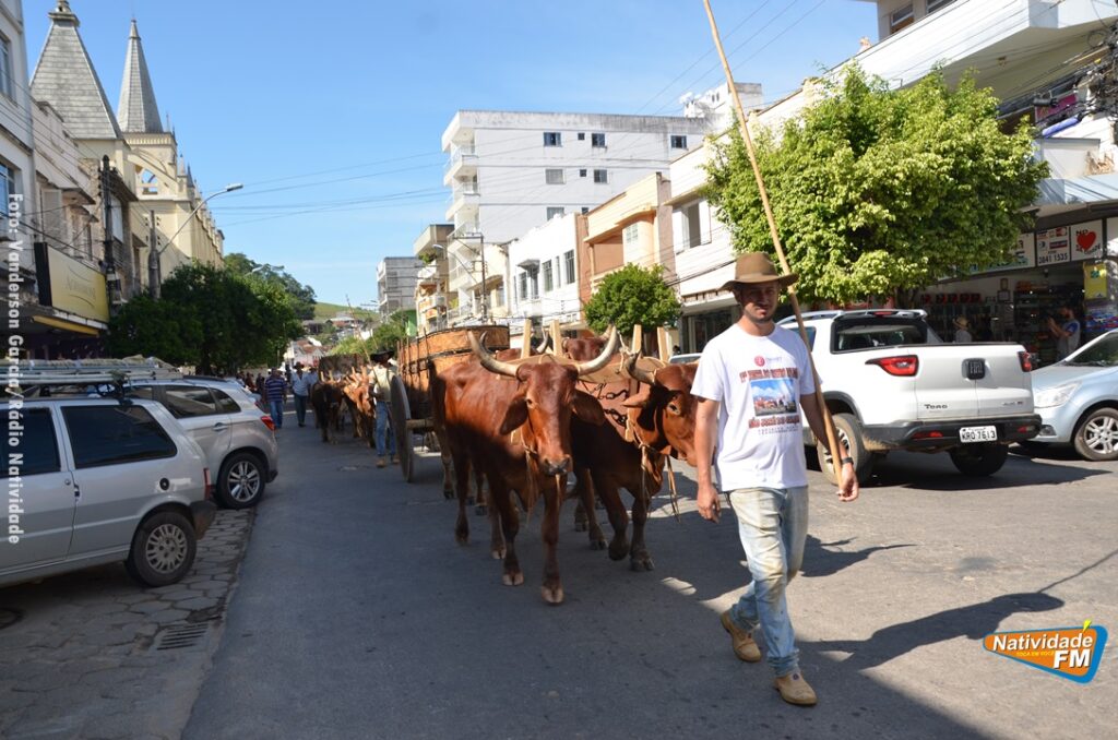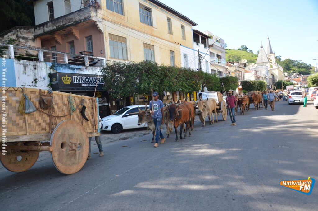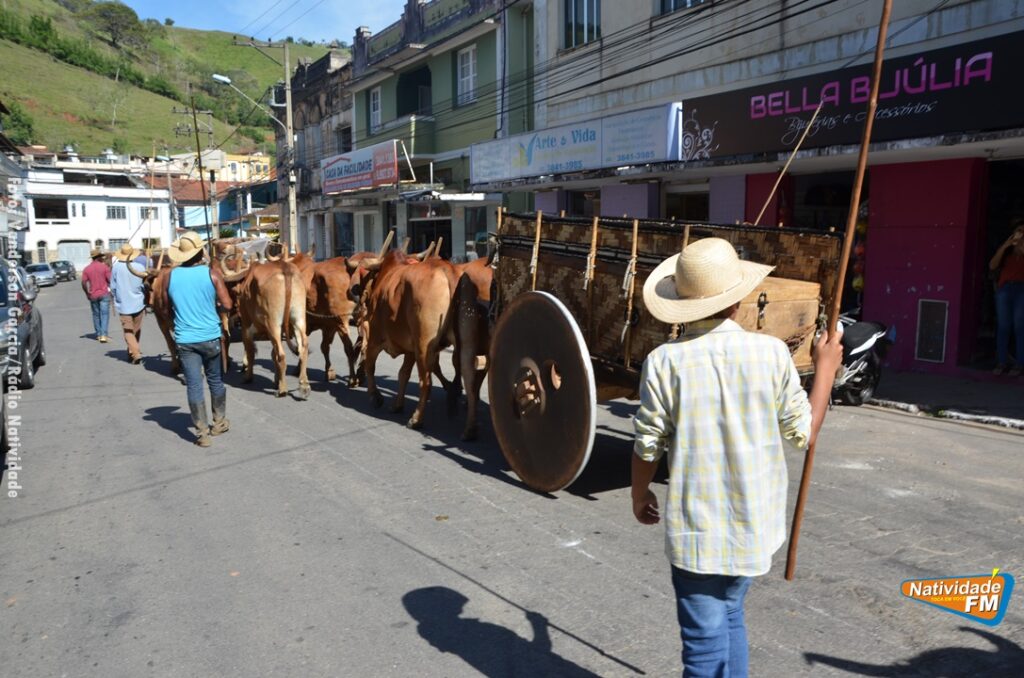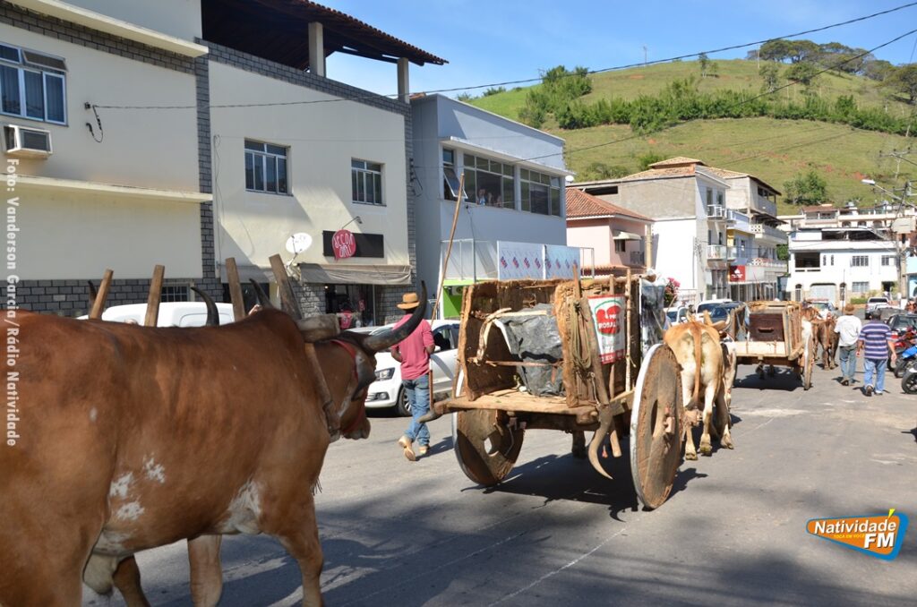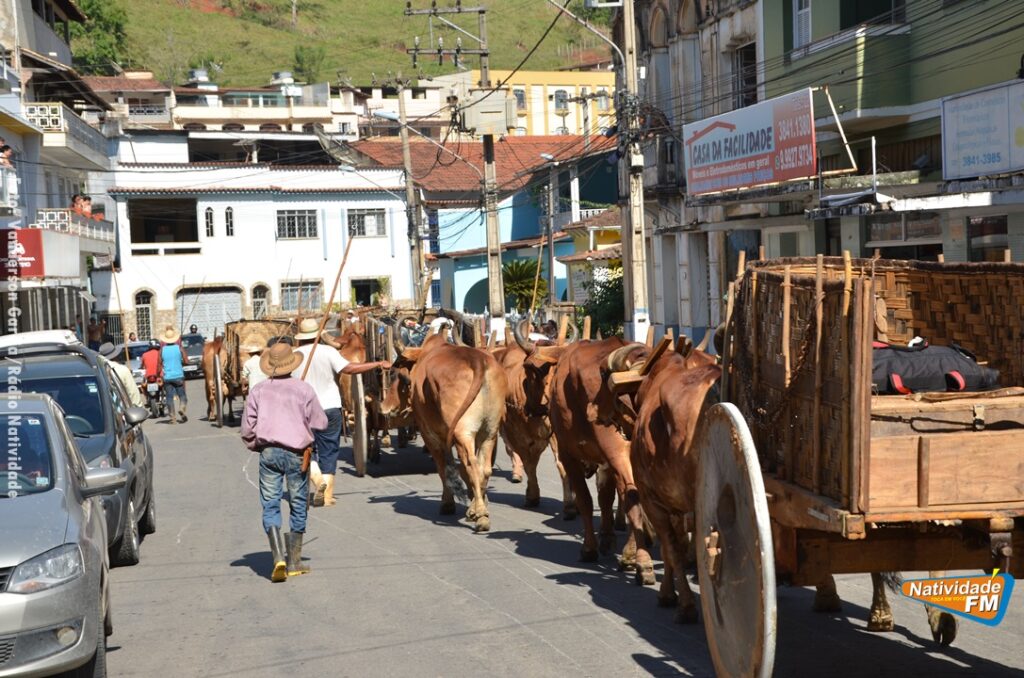 Na manhã desta sexta-feira (24), a comitiva de carros de boi da cidade capixaba de Calçado, passou pela área central de Natividade, com destino à festa de Raposo, neste final de semana.