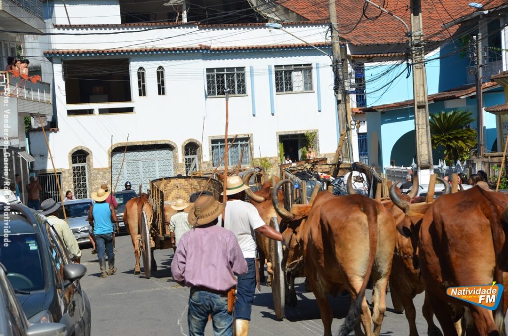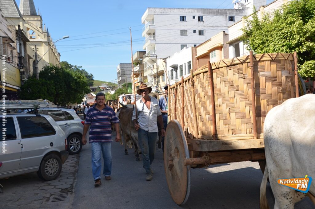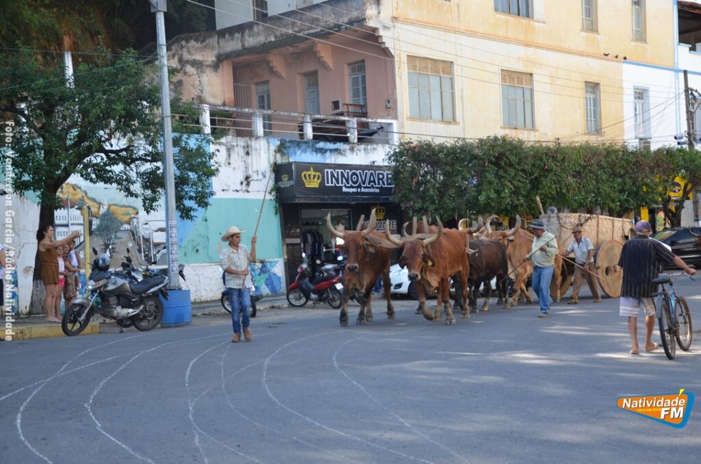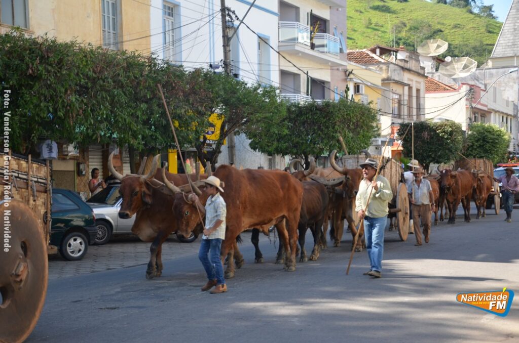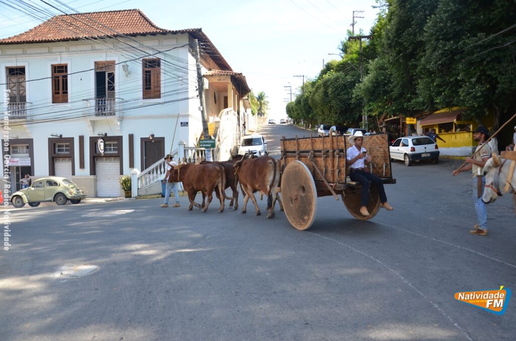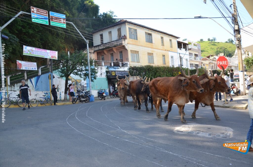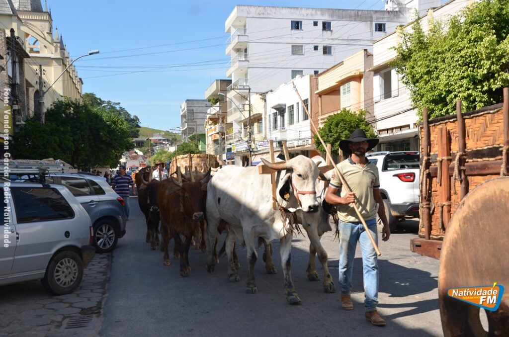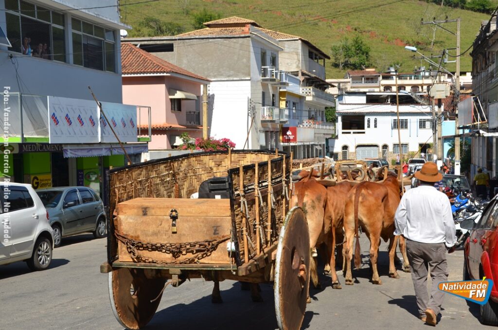 Na manhã desta sexta-feira (24), a comitiva de carros de boi da cidade capixaba de Calçado, passou pela área central de Natividade, com destino à festa de Raposo, neste final de semana.