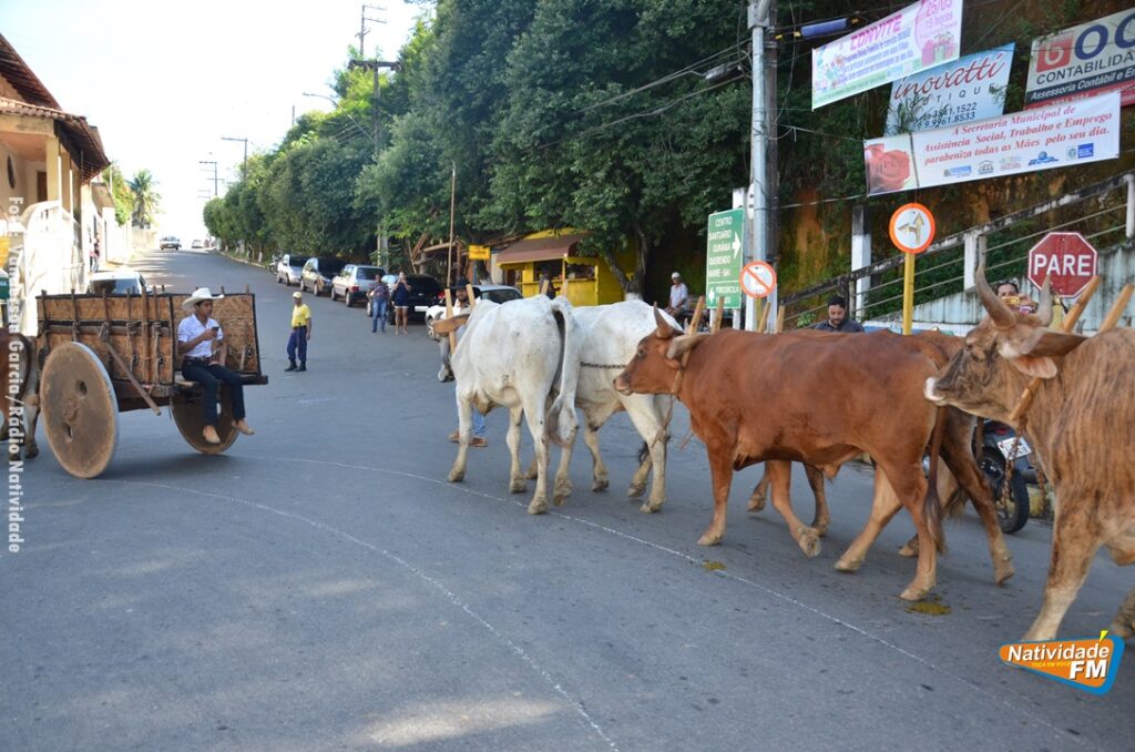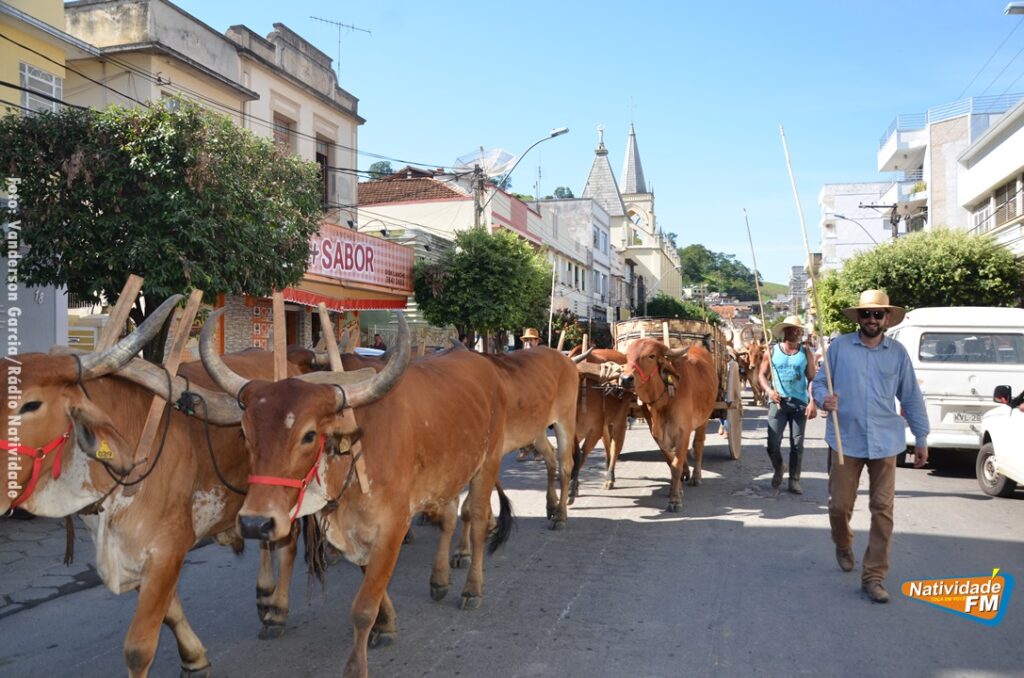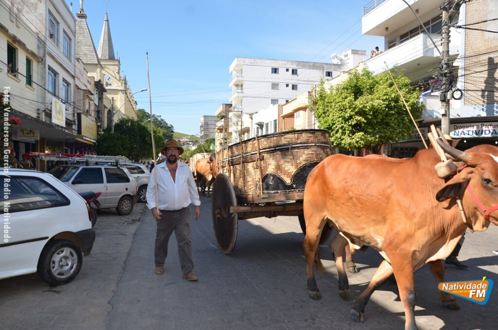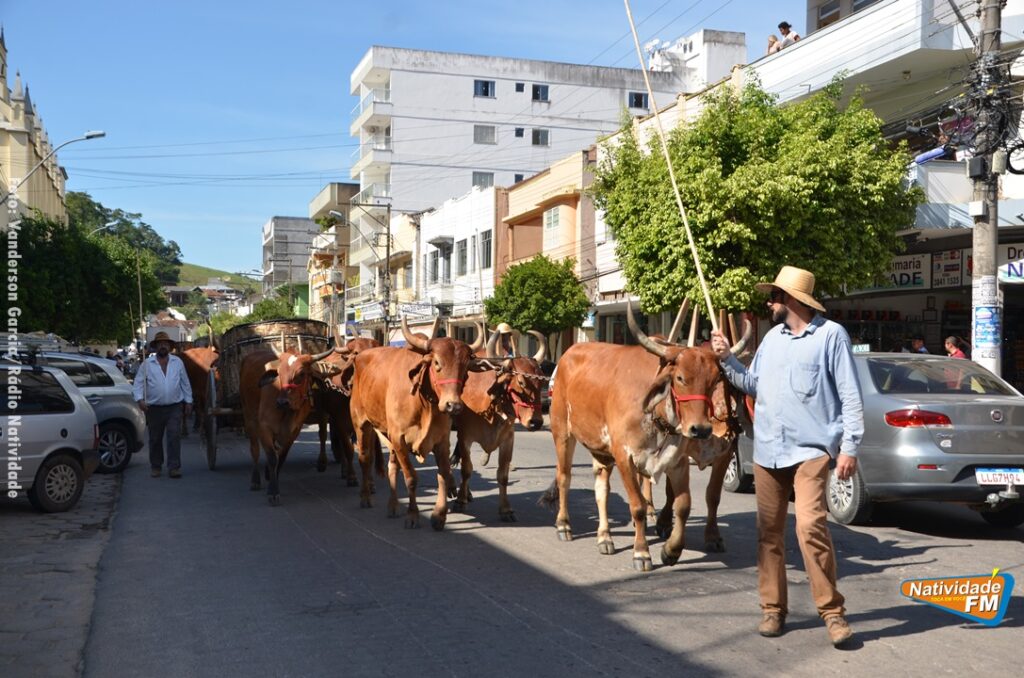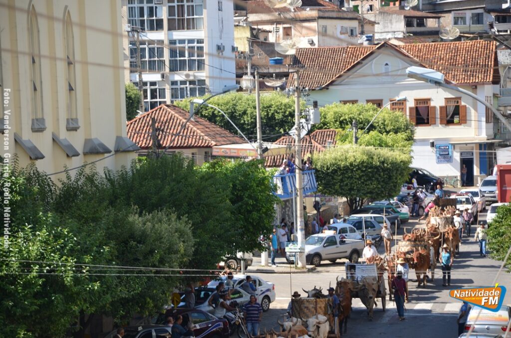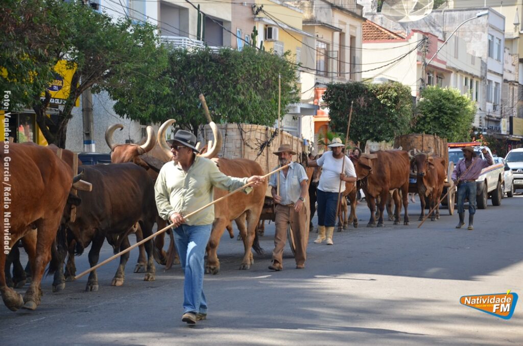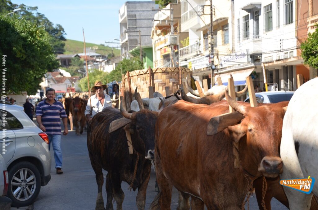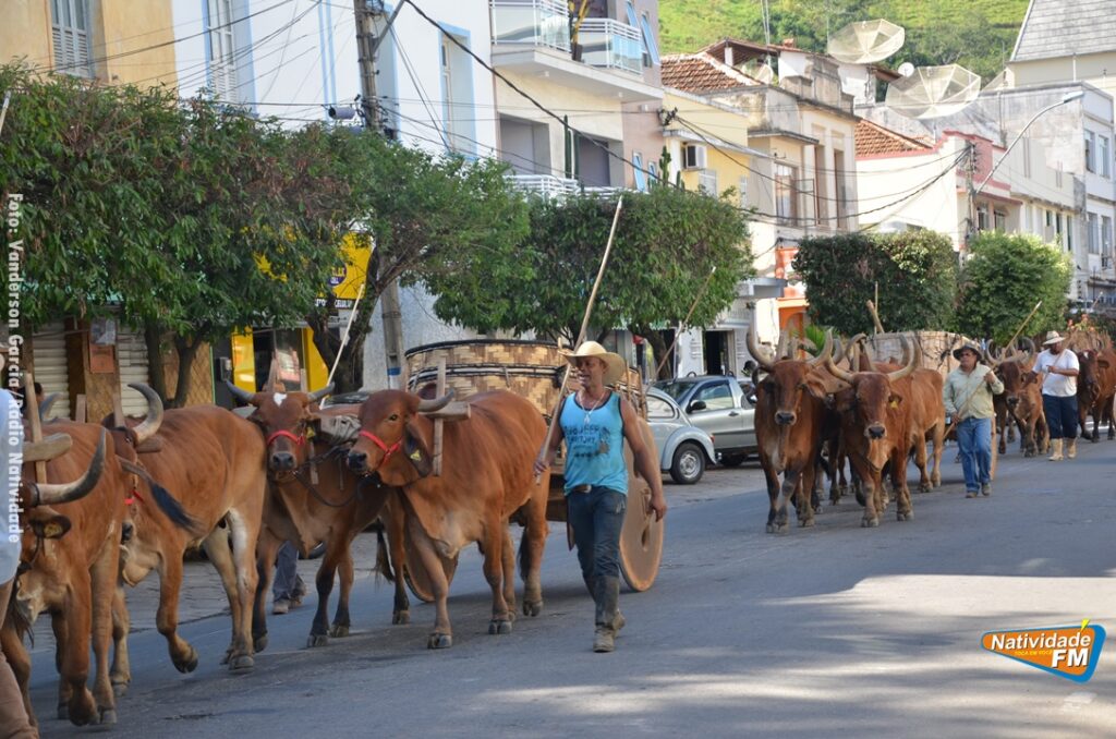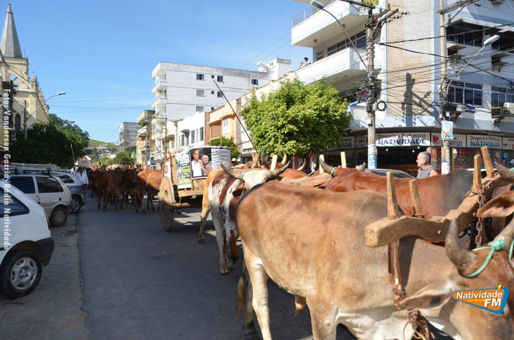 Na manhã desta sexta-feira (24), a comitiva de carros de boi da cidade capixaba de Calçado, passou pela área central de Natividade, com destino à festa de Raposo, neste final de semana.