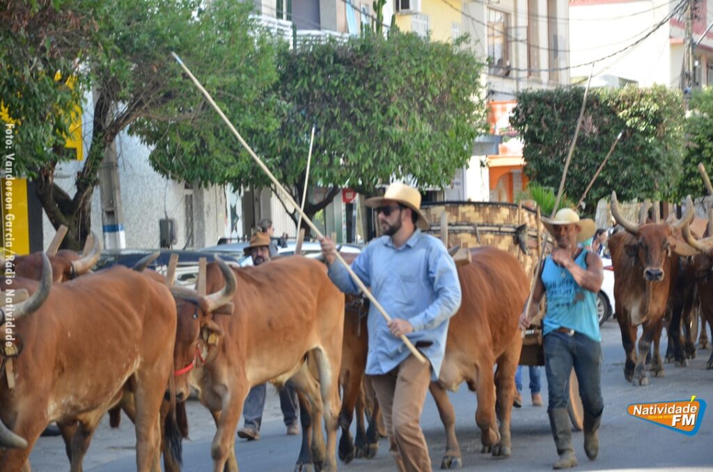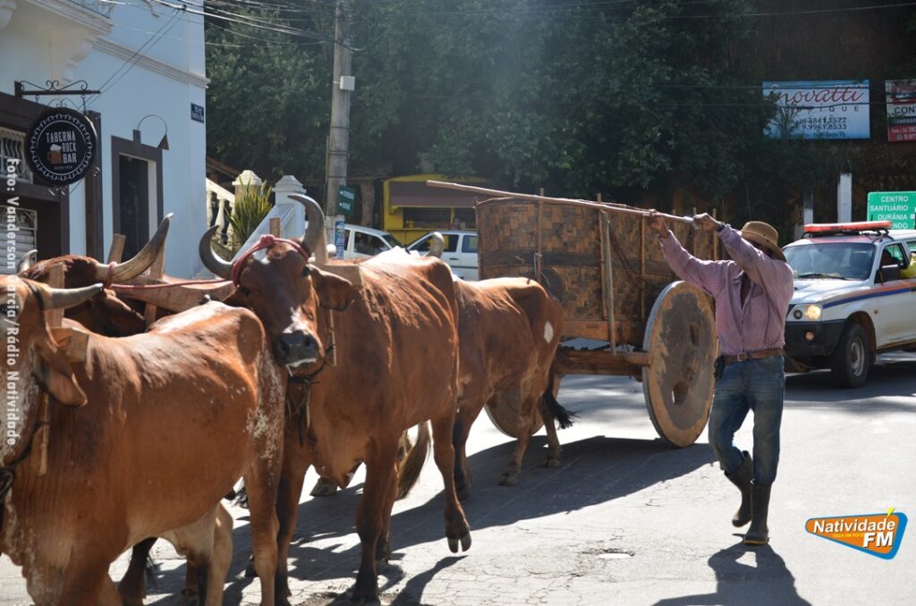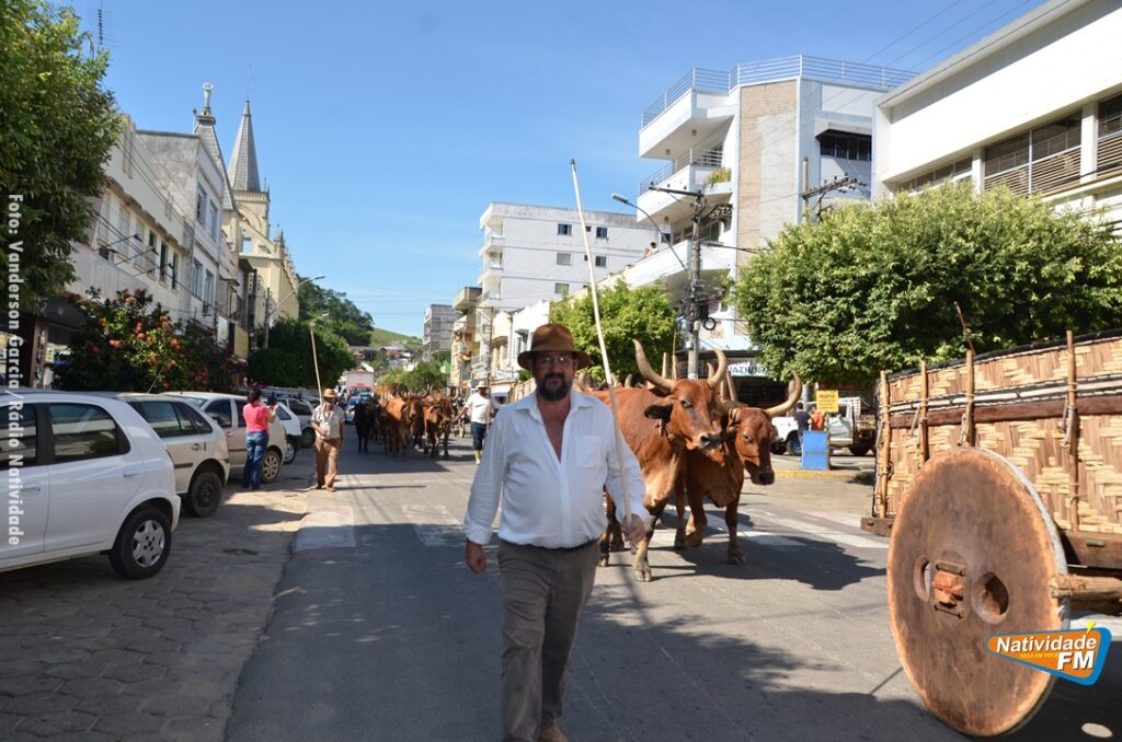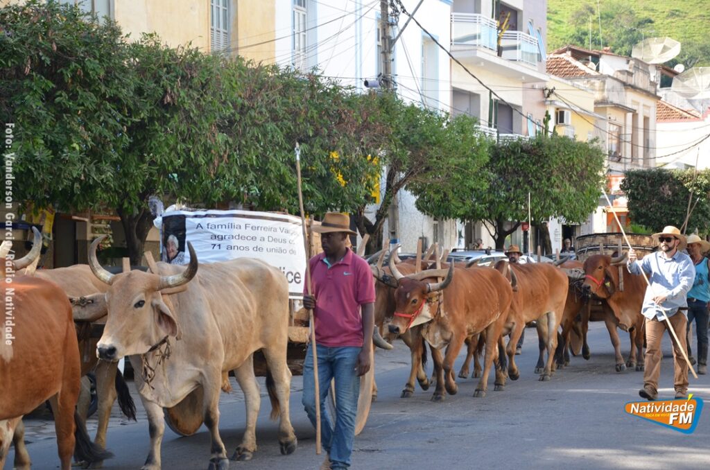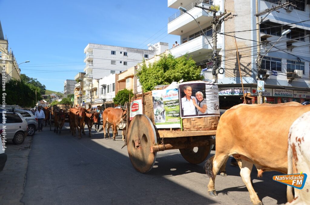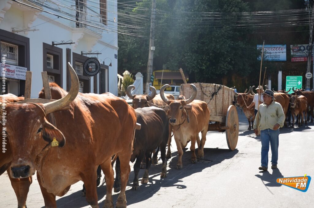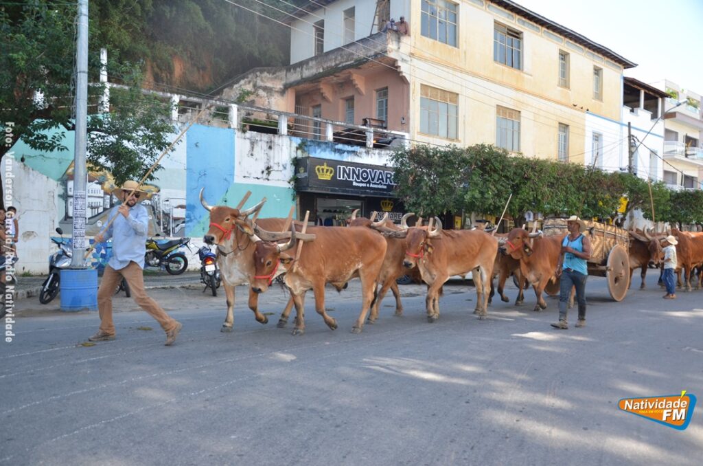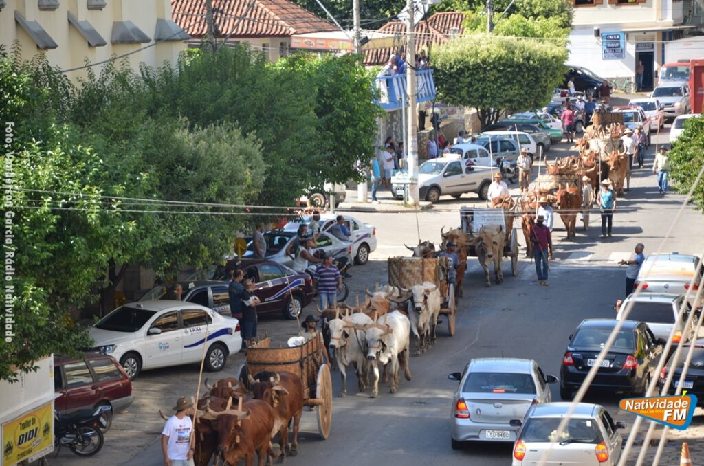 Na manhã desta sexta-feira (24), a comitiva de carros de boi da cidade capixaba de Calçado, passou pela área central de Natividade, com destino à festa de Raposo, neste final de semana.