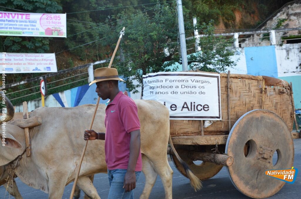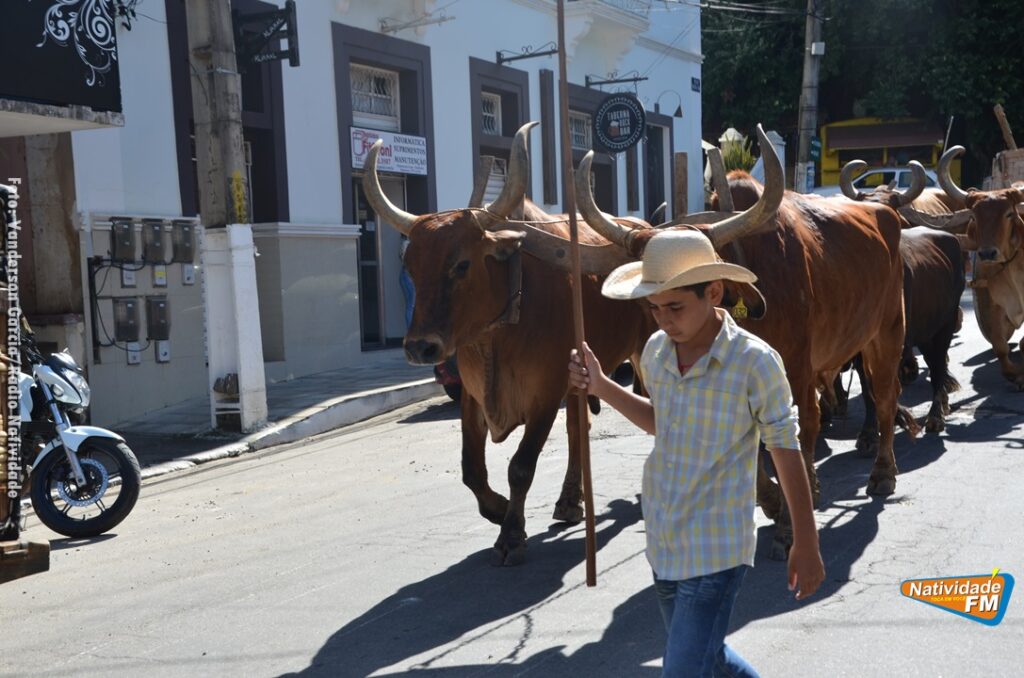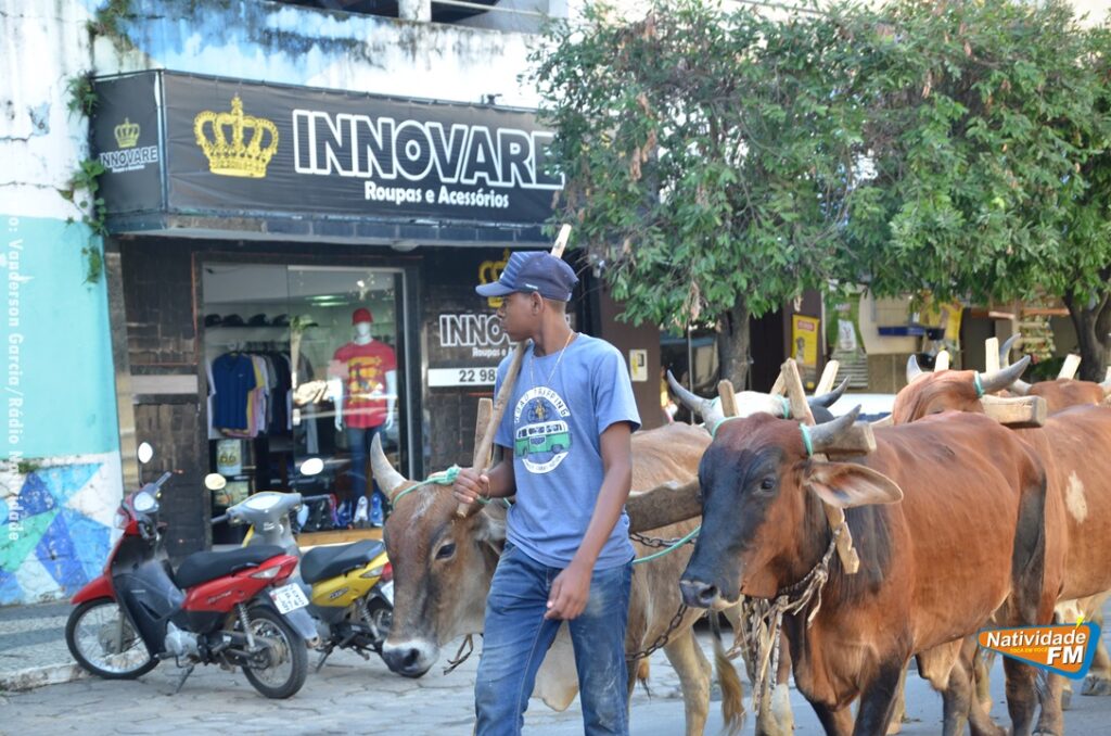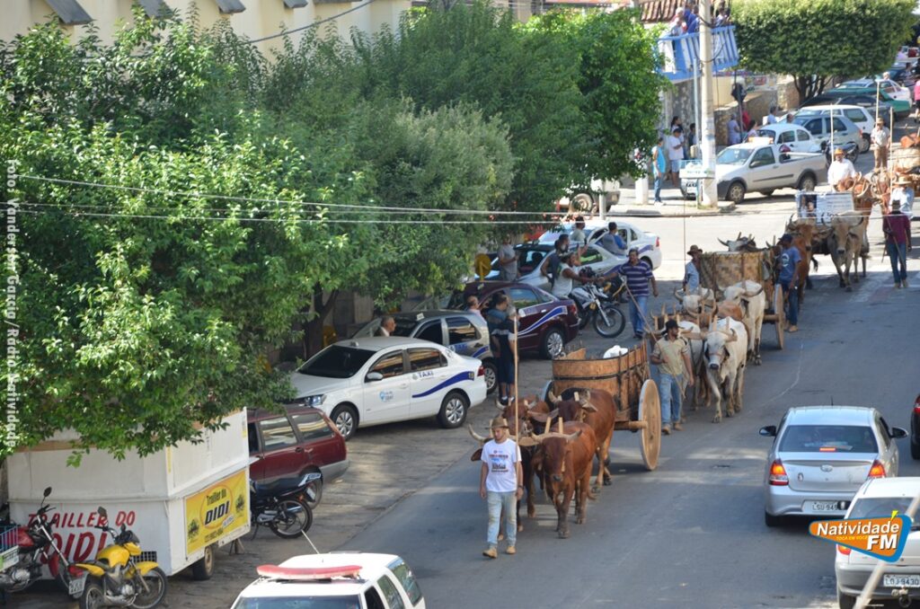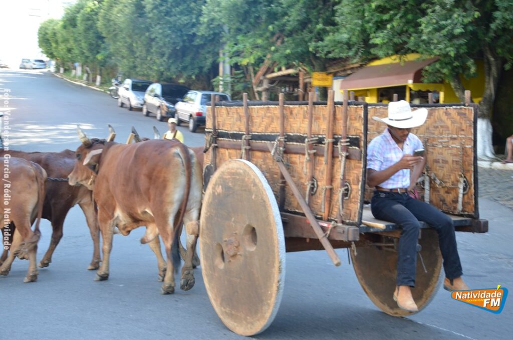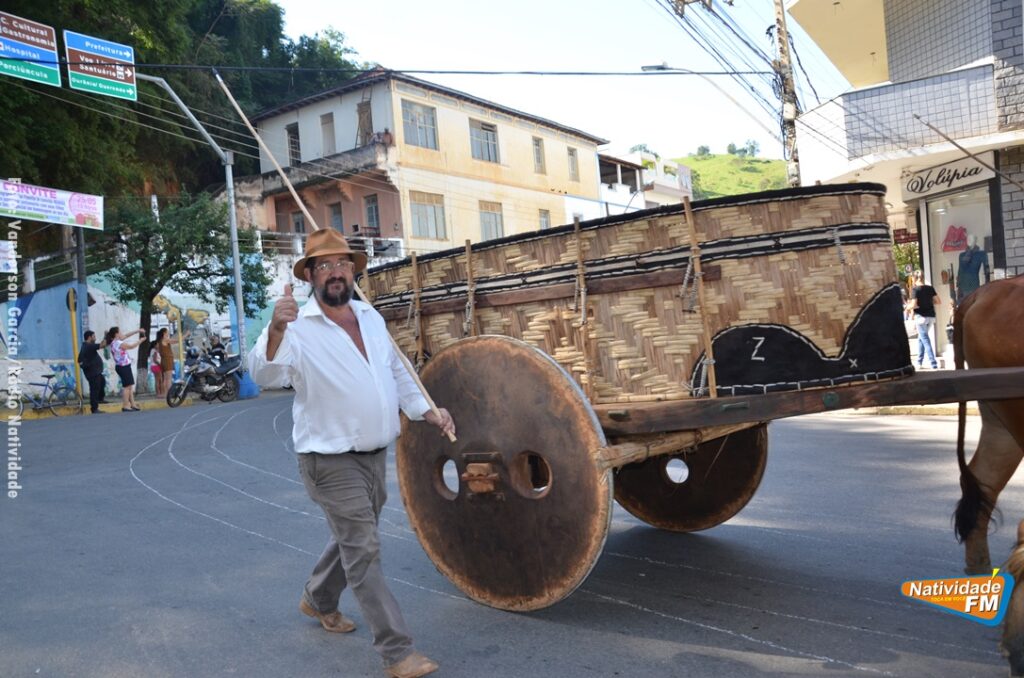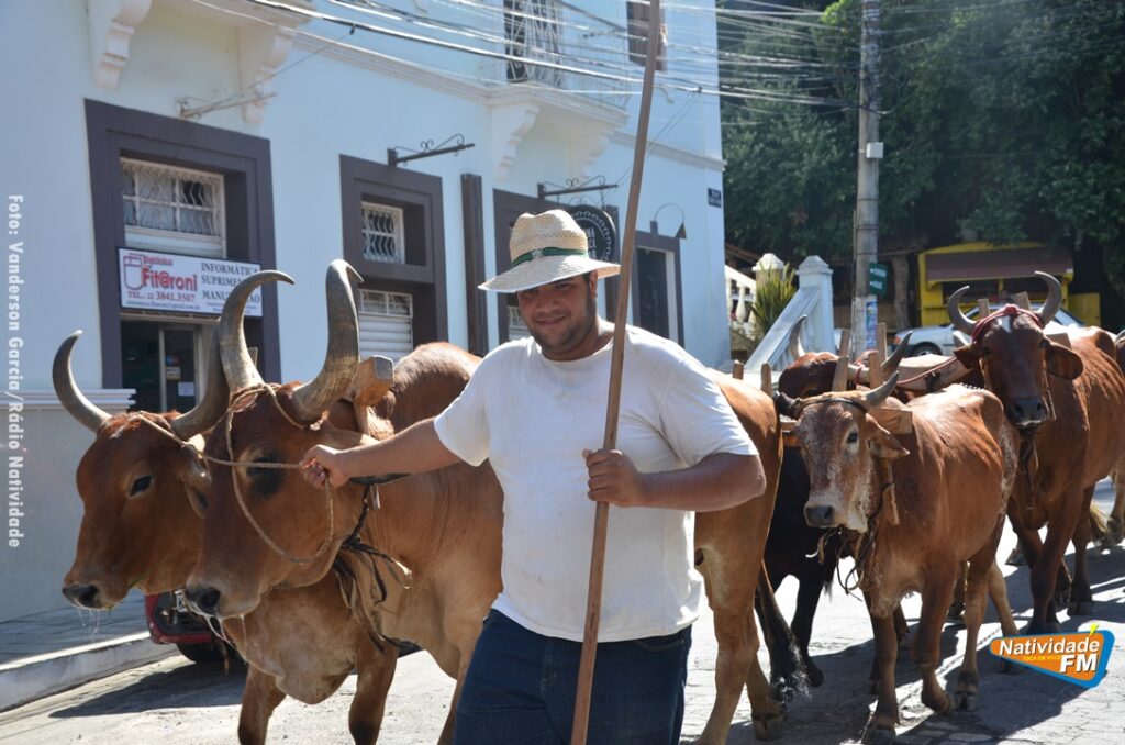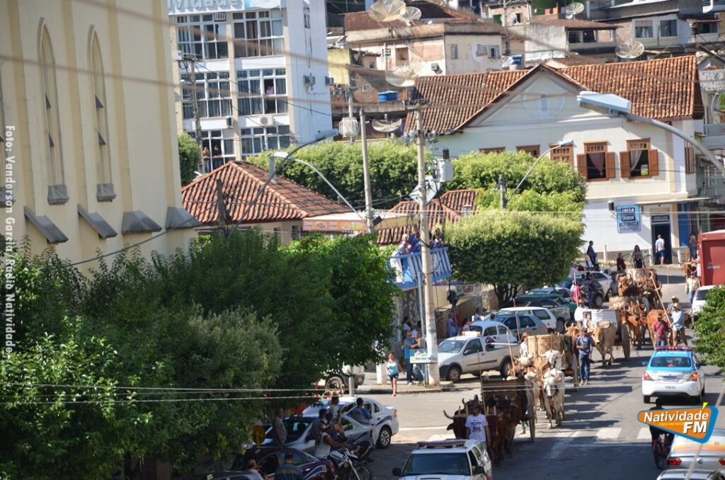 Na manhã desta sexta-feira (24), a comitiva de carros de boi da cidade capixaba de Calçado, passou pela área central de Natividade, com destino à festa de Raposo, neste final de semana.