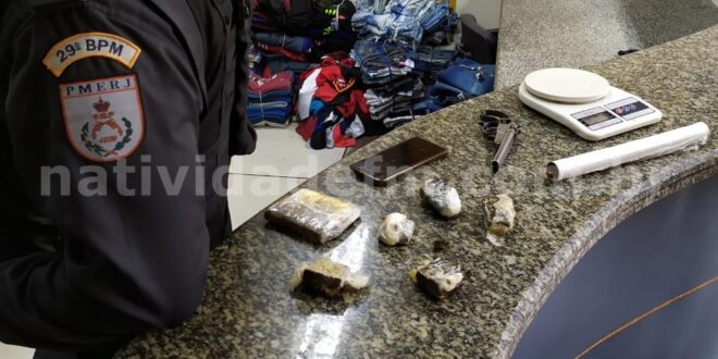 Equipes do 29º BPM prenderam na tarde deste sábado (08), um suspeito de tráfico de drogas, na zona rural de Itaperuna. Os militares depois de receberem denúncia anônima, seguiram até a localidade do Valão do Cedro, onde depois de buscas, encontraram uma garrucha calibre 320, telefone celular, balança de precisão, além de dinheiro, material para endolação e quase 250 gramas de maconha, no interior da residência de Washington de Lima Teixeira, de 25 anos, que conduzido até o plantão de área da 140ª Delegacia de Natividade, autuado em flagrante pelo delegado Henrique Lobato, permanecendo na distrital aguardando transferência ao sistema prisional.