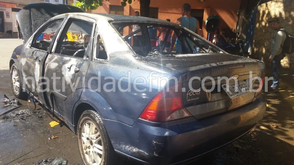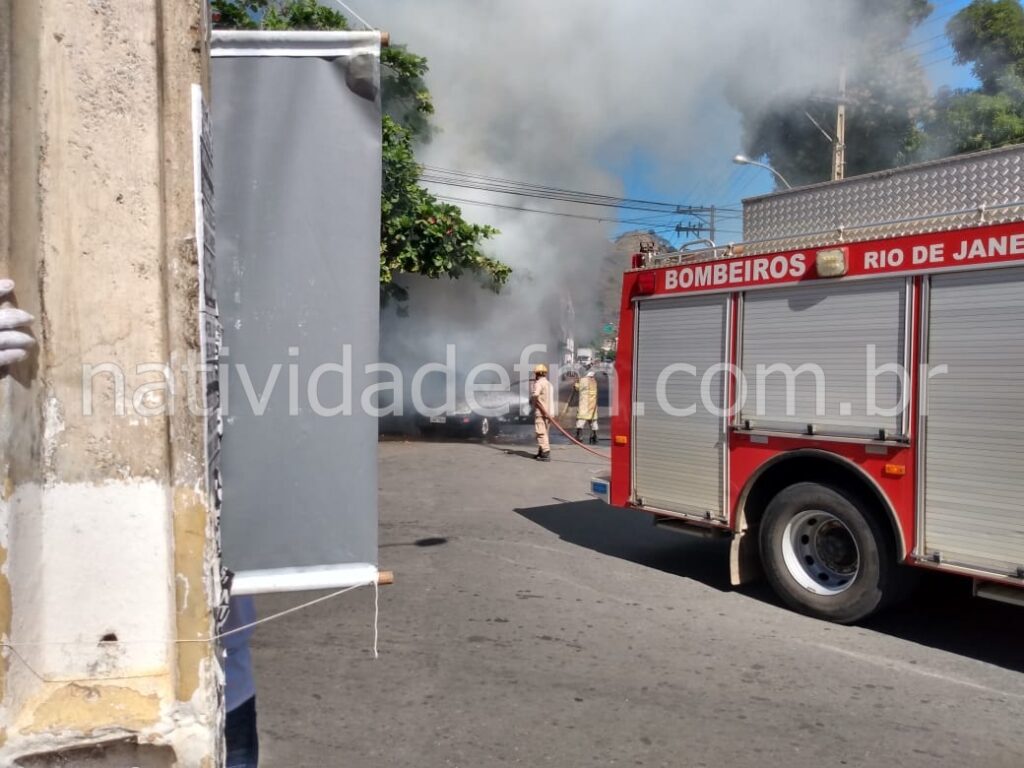 No final da manhã desta segunda-feira (01), um veículo ficou quase que completamente destruído, após pegar fogo na Rua Intendente Franklin Rabello, no bairro do Pito, Natividade. Segundo testemunhas, o Ford Focus com placa de Porciúncula, seguia sentido Balneário, quando seu motorista, só teve tempo de estacionar e deixar o carro, no qual estava com a família e logo as chamas se alastraram rapidamente. Moradores e populares, tentaram prestar auxílio, mas o fogo só foi contido após a chegada dos bombeiros minutos depois.