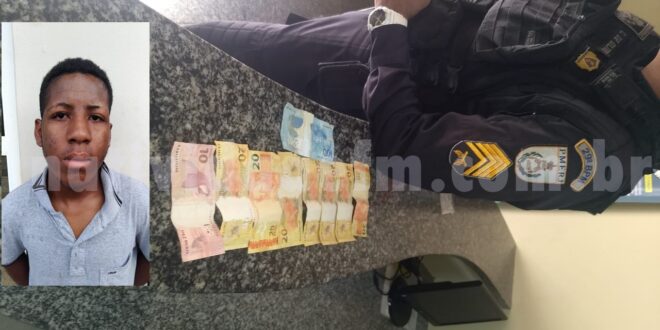 O acusado, identificado como Diego Pereira da Silva (detalhe), foi localizado com R$ 250 pelas equipes no entroncamento da RJs 186 e 230, na entrada da cidade (próximo a Ponte Nova). Ele ainda tentou fugir, mas acabou alcançado, contido, apresentado ao plantão da 144ª Delegacia, autuado em flagrante por roubo e corrupção de menores, já que seu comparsa era um adolescente, que havia sido apreendido na madrugada (leia abaixo).