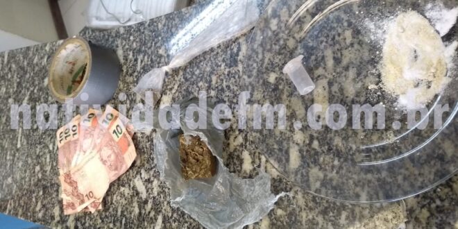 Militares do Patrulhamento Tático Móvel (PATAMO – sargentos Prevato/Eduardo e cabos Marquioti/França), por conta de denúncia, realizaram incursão no Morro São João Batista, Porciúncula, localizando Leonardo Reis Brum de Souza, o “Léo Macaé”, de 23 anos, apreendendo em sua residência, na Rua Sebastião Andrade Prolan, cerca de 22 gramas de maconha, dois de cocaína e material para endolação.