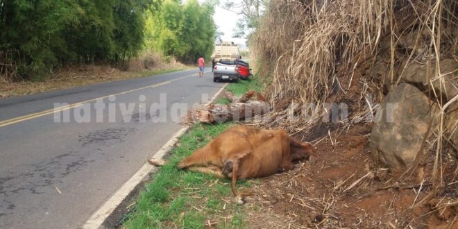 No final da madrugada deste domingo (25), um animal na pista provocou acidente de trânsito na RJ 214, na zona rural de Natividade. Dois homens seguiam em uma caminhonete Fiat Toro de cor vermelha, quando na altura da Fazenda do Alegre, repentinamente uma vaca atravessou a via, o motorista, não conseguiu desviar a tempo, ocorrendo a colisão. Apesar dos estragos na parte frontal do veículo, ninguém se feriu. O bovino – sem marcas que pudessem identificar o proprietário – não resistiu e morreu.