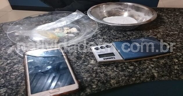 Na noite desta segunda-feira (02), militares do 29º BPM prenderam um suspeito de tráfico de drogas, no bairro Liberdade, Natividade. Após receberem denúncias, os agentes seguiram até a Rua José de Lannes Dantas Brandão, onde realizaram buscas pelo interior da residência de Antônio Carlos Ribeiro Júnior, o “Rosim”, de 33 anos, encontrando um papelote de cocaína, bacia metálica e prato com vestígios da substância, além de fermento em pó e balança de precisão. No celular do envolvido, com sua autorização, os policiais verificaram a existência de mensagens, nas quais usuários encomendam entorpecentes. Autuado em flagrante na 140ª DP, ele deve ser transferido nas próximas horas ao sistema prisional.