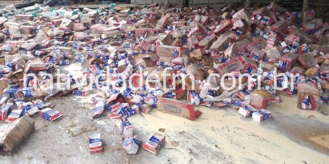 Cerca de 21 mil litros de leite longa vida – caixinha – foram saqueados após acidente no início da tarde desta quinta-feira (12), no quilometro 85 da BR 356, na zona rural de Cardoso Moreira. O motorista, identificado como Wildener Fernades Bahiense, de 40 anos, que não se feriu, havia deixado pouco antes a unidade da Quatá em Itaperuna, quando ao fazer uma curva, a carga avaliada em cerca de R$ 63 mil, tombou e se espalhou pelo acostamento. Populares que passavam pelo local, encheram seus veículos com o produto e nem mesmo a presença da polícia, coibiu os furtos. A empresa proprietária da carga, horas depois prestou queixa na 148ª DP/Italva.