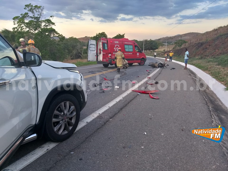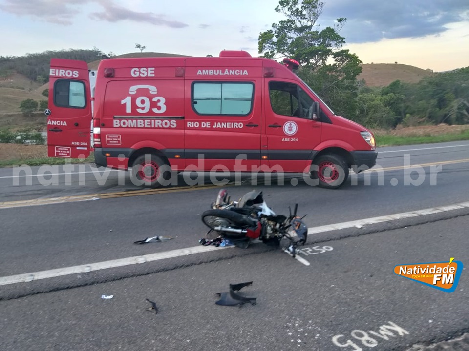 Colisão envolvendo uma moto e a caminhonete Fiat Toro no final da tarde desta terça-feira (29), no quilômetro 88 da BR 356, entre os municípios de Italva e Cardoso Moreira. Segundo informações dos bombeiros, a mulher de 62 anos, conduzia a Honda Biz, quando perdeu o controle da direção, invadiu a contramão da via, batendo de frente com utilitário que trafegava em sentido contrário.