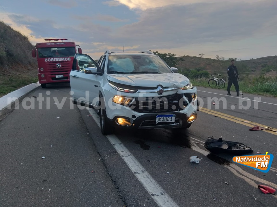 Militares do destacamento 3/21, ainda chegaram a ser acionados, mas a vítima, identificada como Zenilda M. Neves, já não apresentava os sinais vitais e seu corpo, após passar por perícia foi removido já de noite, ao IML de Itaperuna. A Polícia Rodoviária Federal assumiu a ocorrência, registrada na 148ª DP, enquanto que o motorista da caminhonete não se feriu.