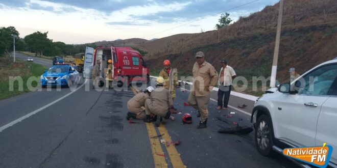 Colisão envolvendo uma moto e a caminhonete Fiat Toro no final da tarde desta terça-feira (29), no quilômetro 88 da BR 356, entre os municípios de Italva e Cardoso Moreira. Segundo informações dos bombeiros, a mulher de 62 anos, conduzia a Honda Biz, quando perdeu o controle da direção, invadiu a contramão da via, batendo de frente com utilitário que trafegava em sentido contrário.