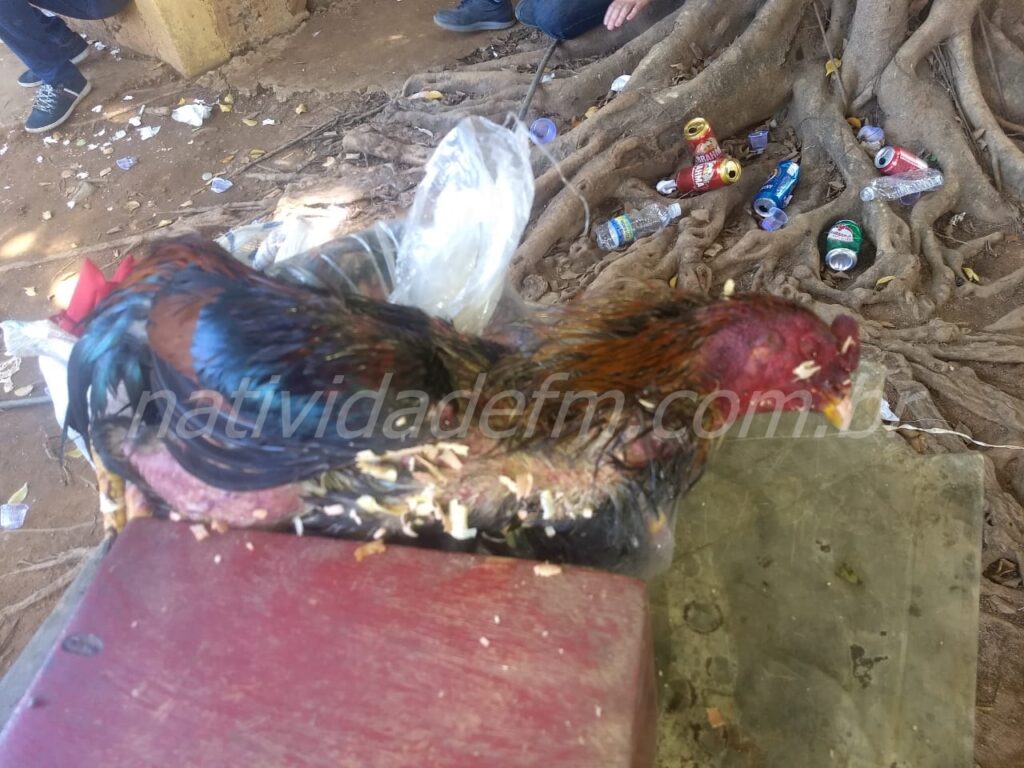 Policiais ambientais da 3ª UPAm/Desengano com o apoio de colegas do 29º BPM “estouraram” na tarde deste domingo (03), uma rinha de galos clandestina, que funcionava na zona rural de Natividade. No local, um sítio na região da Revolta no qual havia um galpão com cerca de 300 metros quadrados, os agentes encontraram duas arenas em plena atividade e apreenderam pelo menos 100 galos vivos que eram mantidos em gaiolas, três mortos com indícios de maus-tratos, além de sete coleiros sem as devidas licenças, 286 biqueiras, 101 buchas de espora, 600 esporas, 400 anilhas, 197 lacres, 27 bicos de metal, três relógios de parede, balança R$ 1. 769,00 e até um drone.