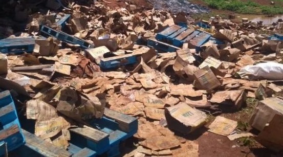 A carga de 700 caixas de óleo de soja, avaliada em torno de R$ 50 mil, por muito pouco foi saqueada na manhã desta segunda-feira (30), após acidente de trânsito na RJ 186, próximo do distrito de Ibitiguaçu, Santo Antônio de Pádua. O motorista da carreta Volvo/Campo Grande (MS), que não se feriu, perdeu o controle da direção do veículo na altura do quilômetro 28, tombando na pista e espalhando o produto pelo via e acostamento. Nisso, dezenas de pessoas tentaram furtar o material, mas acabaram impedidos após a intervenção de policiais militares, que precisaram efetuar pelo menos um disparo em direção a um barranco para dispersar a multidão e preservar o local.