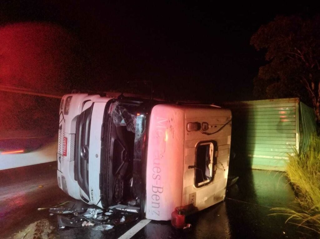 Um motorista que não teve a identidade confirmada, ficou ferido após sofrer acidente de transito na noite desta quinta-feira (02), na RJ 186, zona rural de Itaperuna. Ele conduzia o caminhão Mercedes Benz do tipo baú, quando na altura do distrito de Aré, perdeu controle da direção e tombou na pista. O profissional chegou a ficar preso na cabine, sendo resgado por bombeiros do 21º GBM ao Hospital São José do Avaí, onde permaneceu em observação. Chovia no momento e a pista molhada, pode ter contribuído com o acidente.
