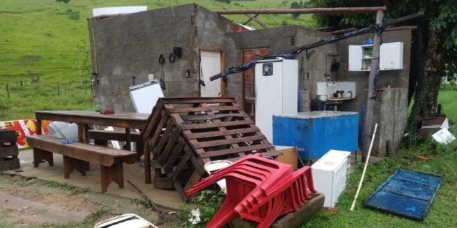 A chuva forte acompanhada de raios, ventos e granizo causou estragos no município de Cambuci na tarde desta quarta-feira (08). De acordo com o secretário de Defesa Civil, Eduardo Werneck, uma casa ficou destelhada na localidade de Cristalina.