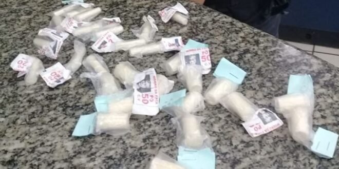 Militares do 29º BPM apreenderam 24 pinos de cocaína, no início da madrugada desta sexta-feira (17), na comunidade do “Morro da Faca”, no bairro Aeroporto, Itaperuna. Os agentes verificavam denúncia de que um casal estaria realizando tráfico no local, quando se deslocaram até a Rua Paulo de Oliveira, de onde dois suspeitos não identificados, conseguiram fugir ao avistar a equipe, que encontrou junto ao hidrômetro de uma casa, a droga que era mantida escondida. O registro da apreensão seguiu para a 143ª DP.